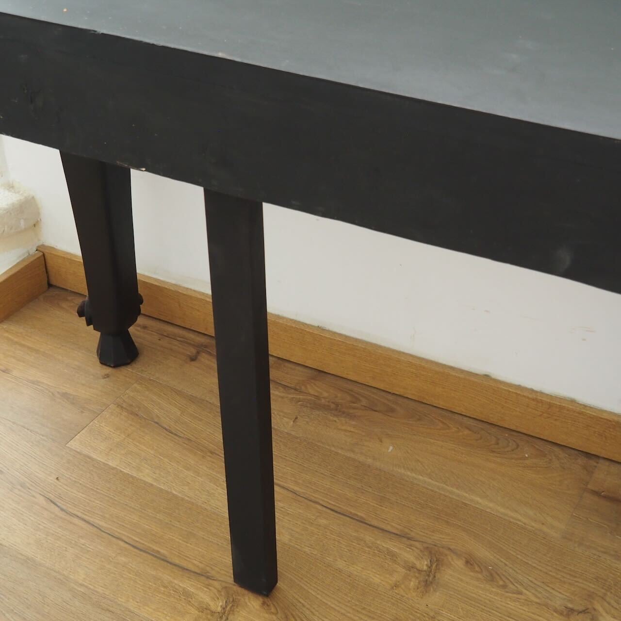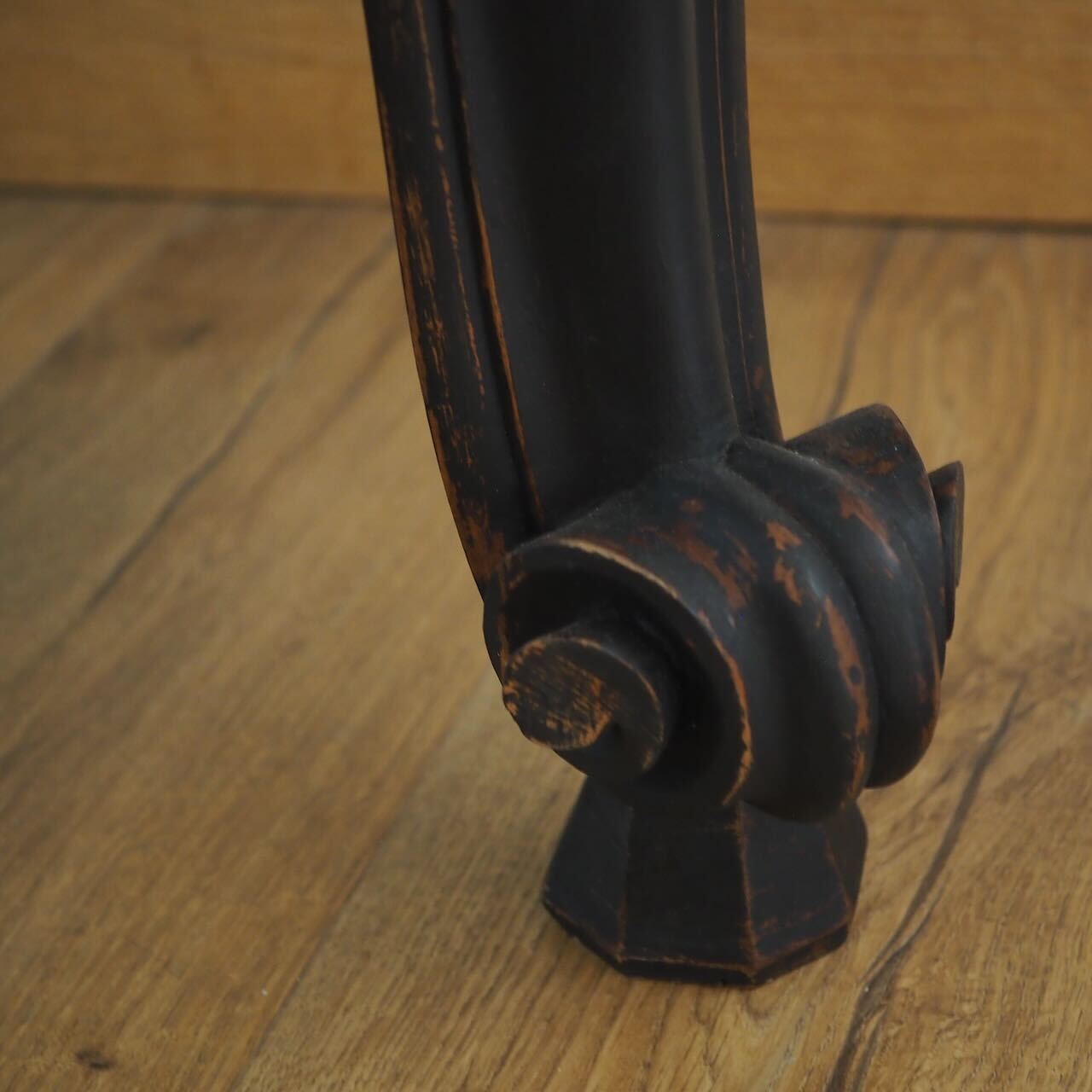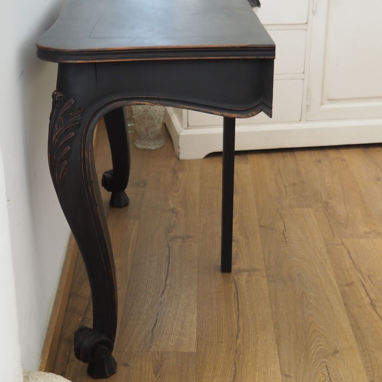 リルシュルラソルグのアンティーク市で見つけた、ブラックのコンソールをご紹介します。アンティークのコンソールは脚が前2本だけで、後ろで壁に固定するタイプが多いのですが、こちらは後ろに脚が1本あるので置くだけでコンソールが設置できます。安定感も問題なし。
