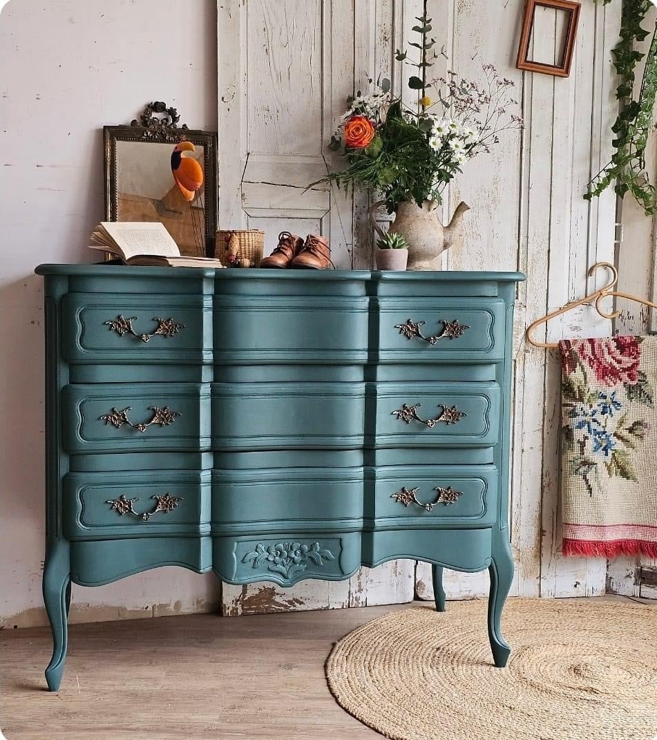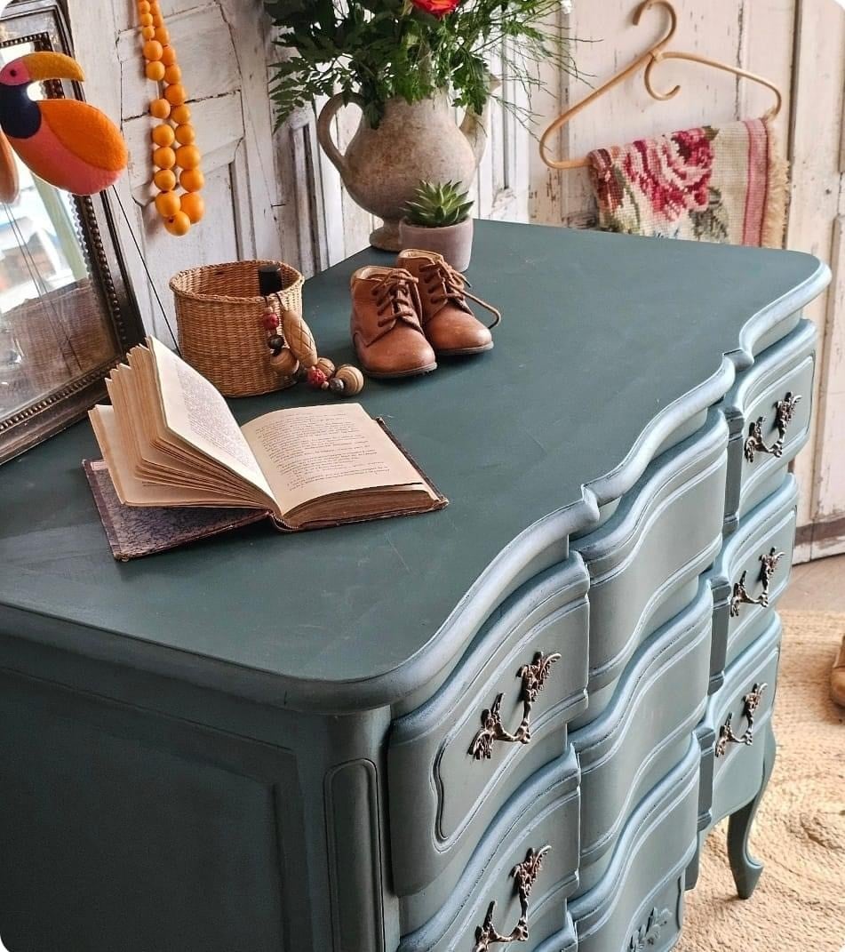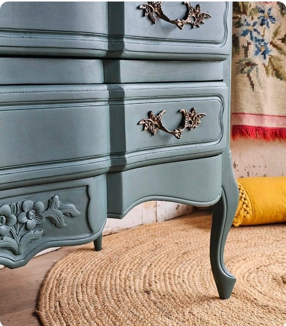 アンティークの3段チェストをご紹介します。フランスアンティークのこの美しいチェストは、フランスらしい深みのあるくすみブルーでペイント。落ち着きがありながら、どんな空間にも華やかさを加える存在感があります。