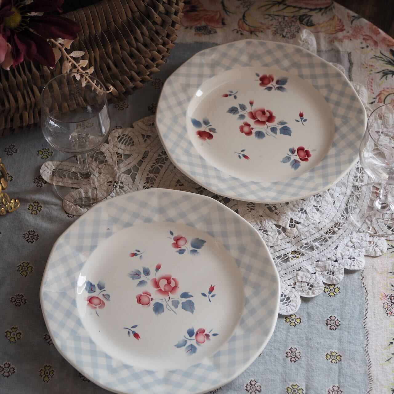 ディゴワン・サルグミンヌの「Bastia」シリーズは、コルス島(コルシカ島)の町バスティアをイメージしたデザインです。可憐なバラに淡いブルーの格子柄の組み合わせが地中海の島の軽やかな空気感を運んでくれます。お得な2枚組。2枚一緒に並べると、かわいさ倍増です!