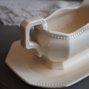 希少なオクトゴナルのソーシエールです。アイボリーの陶肌がやさしくて、貫入からの色づきがまた一つの景色になって深みが出ています。ため息が出る美しさ。もう今後出会える気がしない逸品です。