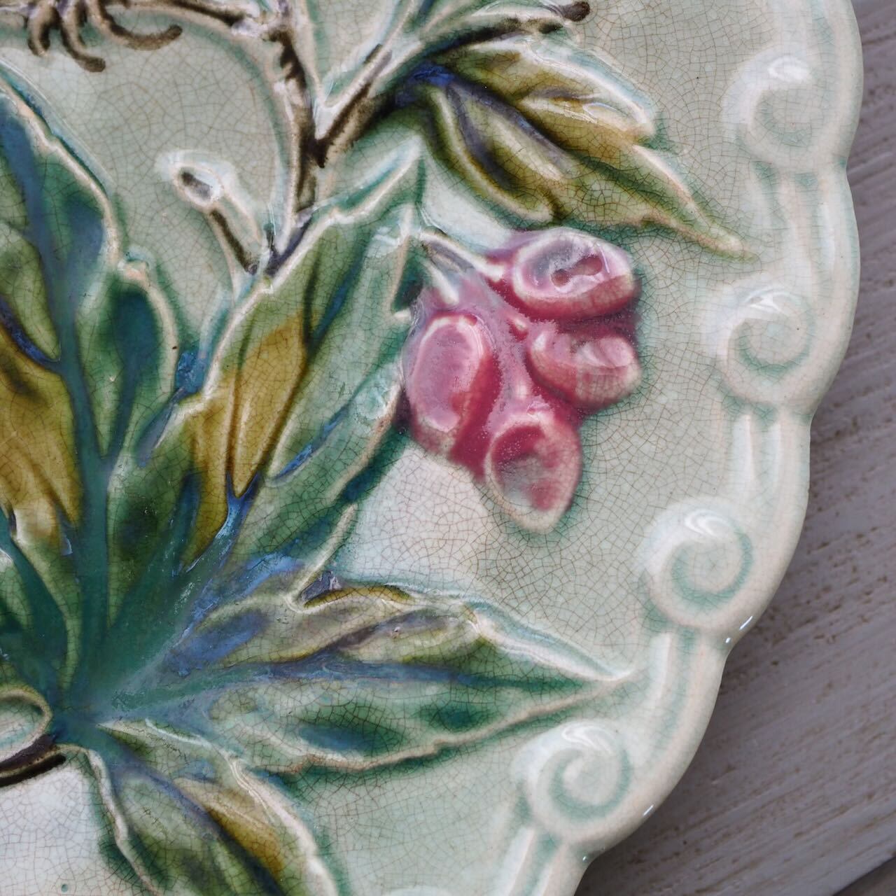 19世紀末〜20世紀初頭にかけて、フランシュ・コンテ地方のサラン・レ・バンでは色彩豊かなバルボティーヌの陶器がたくさん作られました。色の濃さには個体差が大きくありますが、こちらは薄めの色調です。