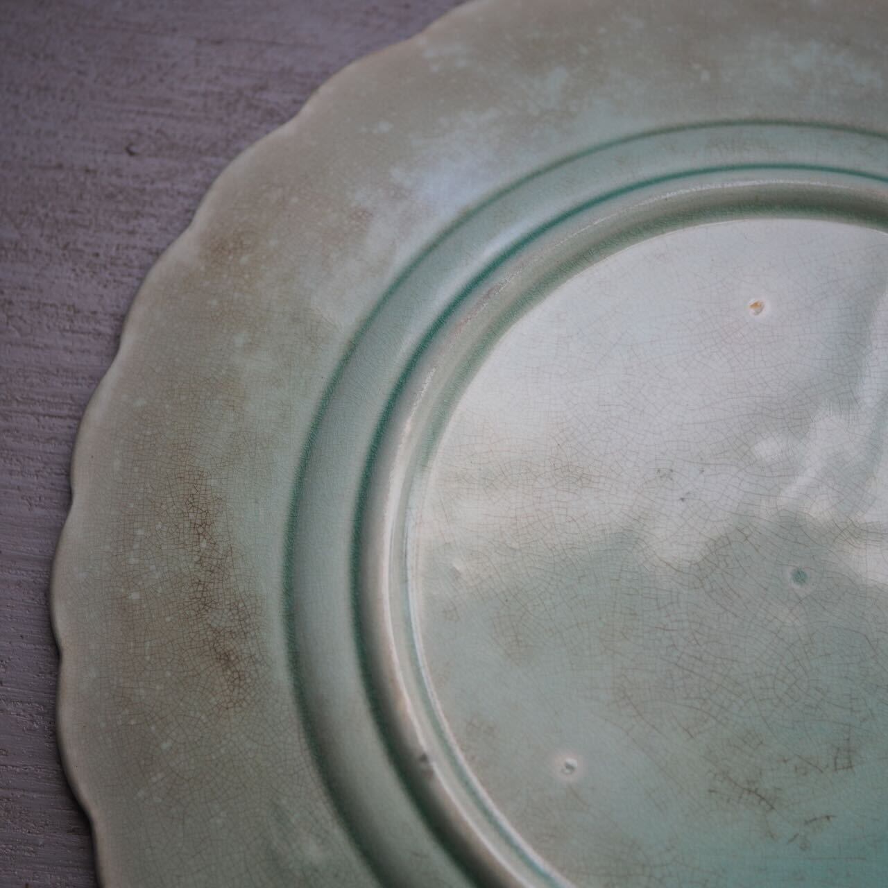 欠けもヒビもチップもありません。貫入が細かく入り、一部シミのようになっている部分があります。特に裏面はシミが全体にできています。アンティーク品としてはたいへん良好なコンディションですが、長い時を経たものですので多少の汚れや傷はございます。ご理解の上、お求めください。