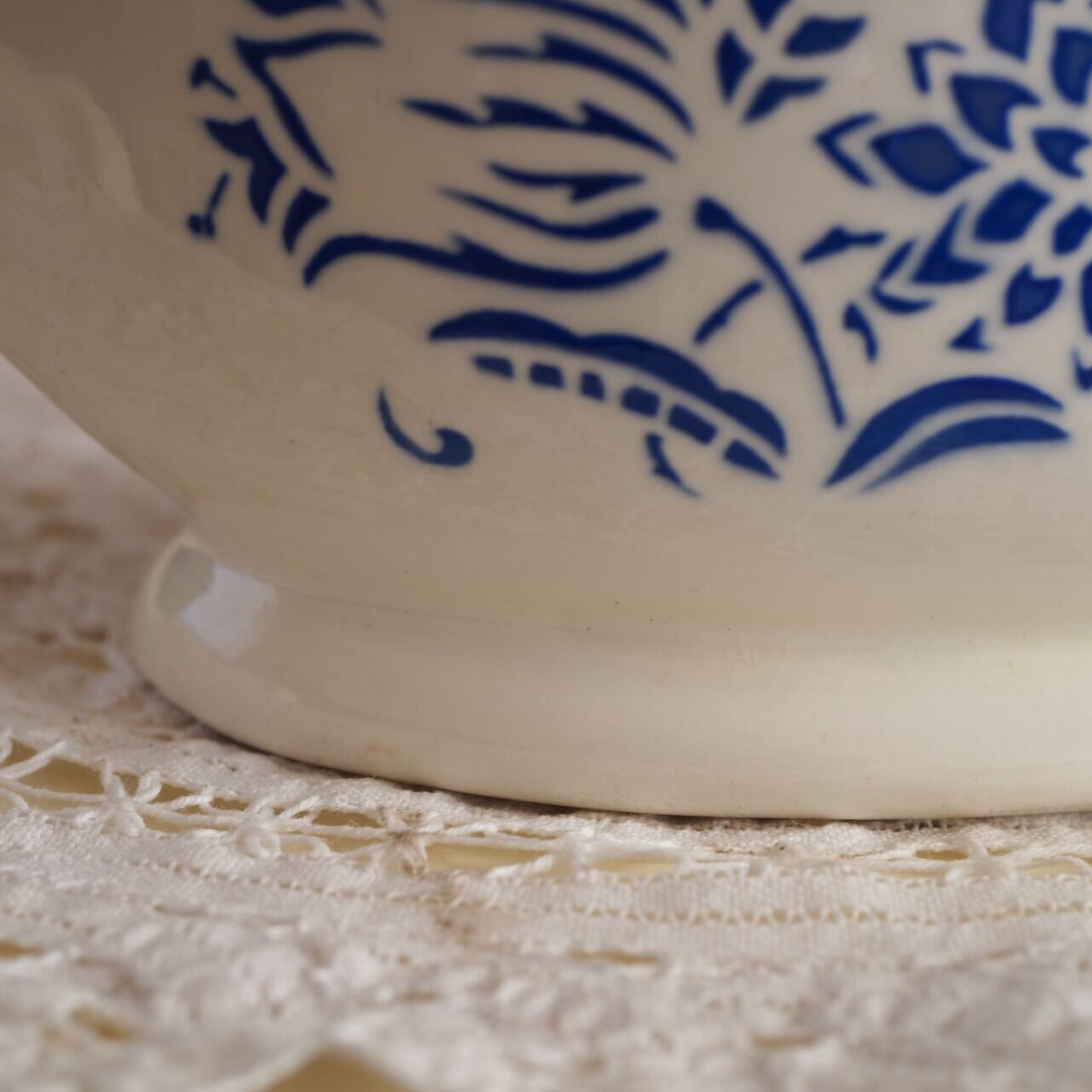 ソーシエールはお皿が一体型になったものが多いのですが、こちらはお皿がないタイプです。持ち手があって、すっと細長いデザインなのでシャープな印象ですが、花のステンシルがかわいらしくて和みます。料理を引き立てるだけでなく、インテリアとしても素晴らしい存在感を放ちます。