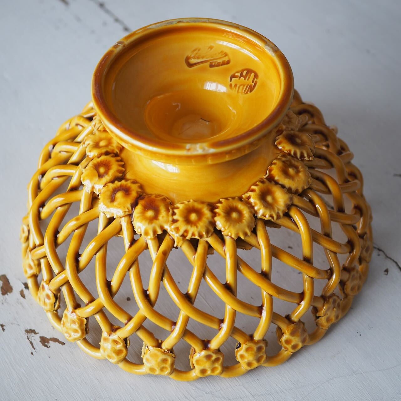 このタイプの器は編み目が割れているものが多いのですが、こちらは網目が繊細であるにもかかわらず、特筆すべきダメージはなく、全体にとても良好なコンディションの希少品です。