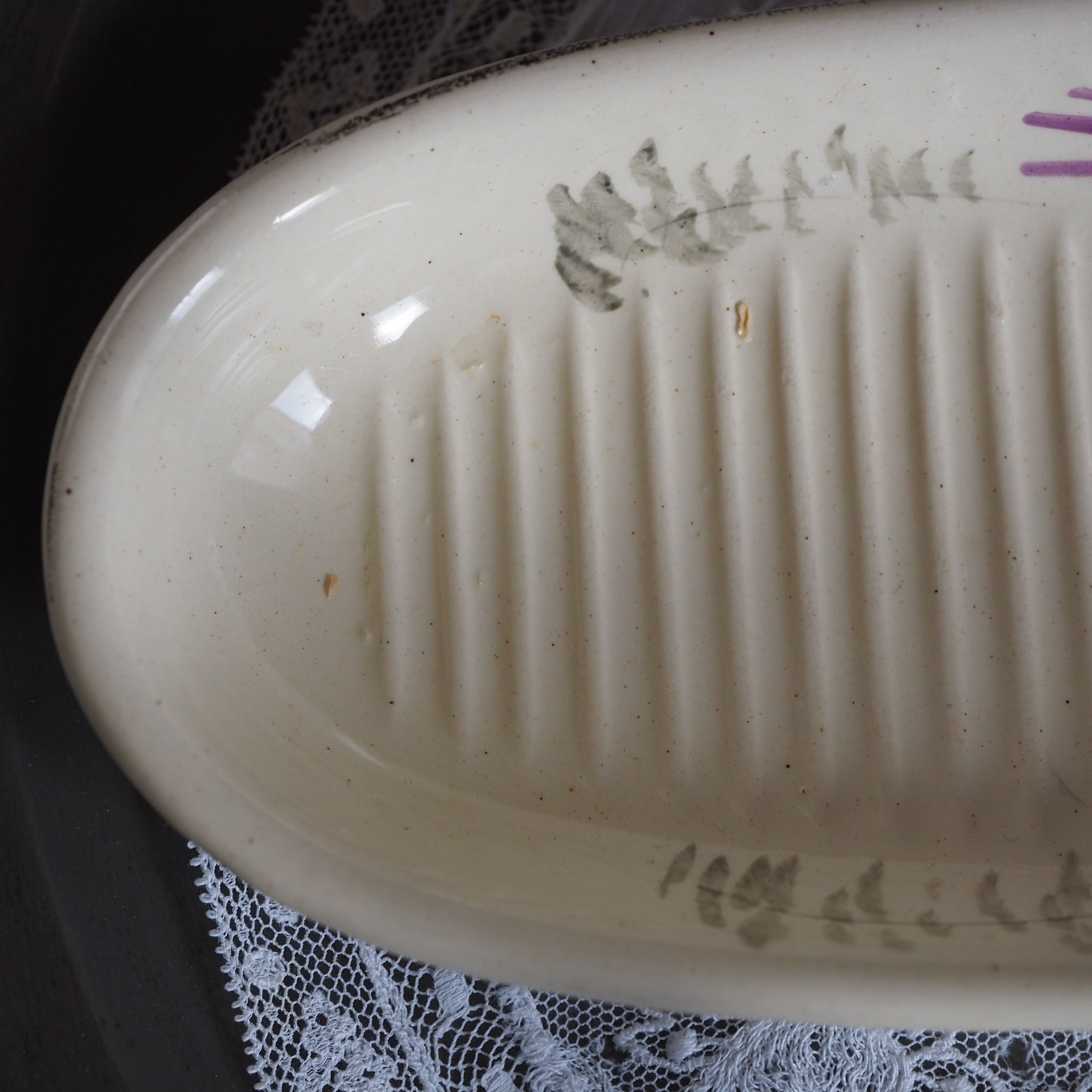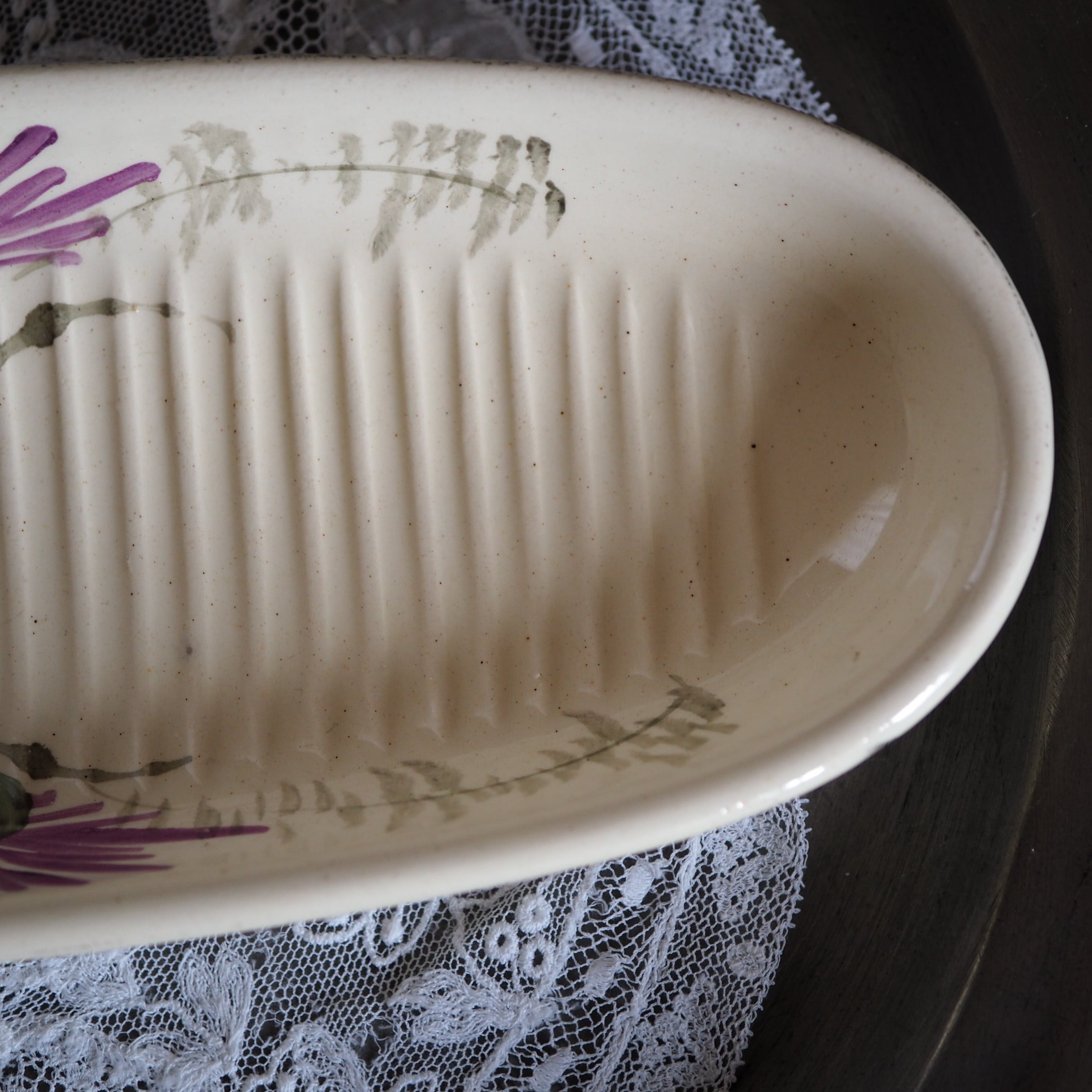 サンタマンアマージュ窯が1930年に作成した花のモチーフのソープトレイです。