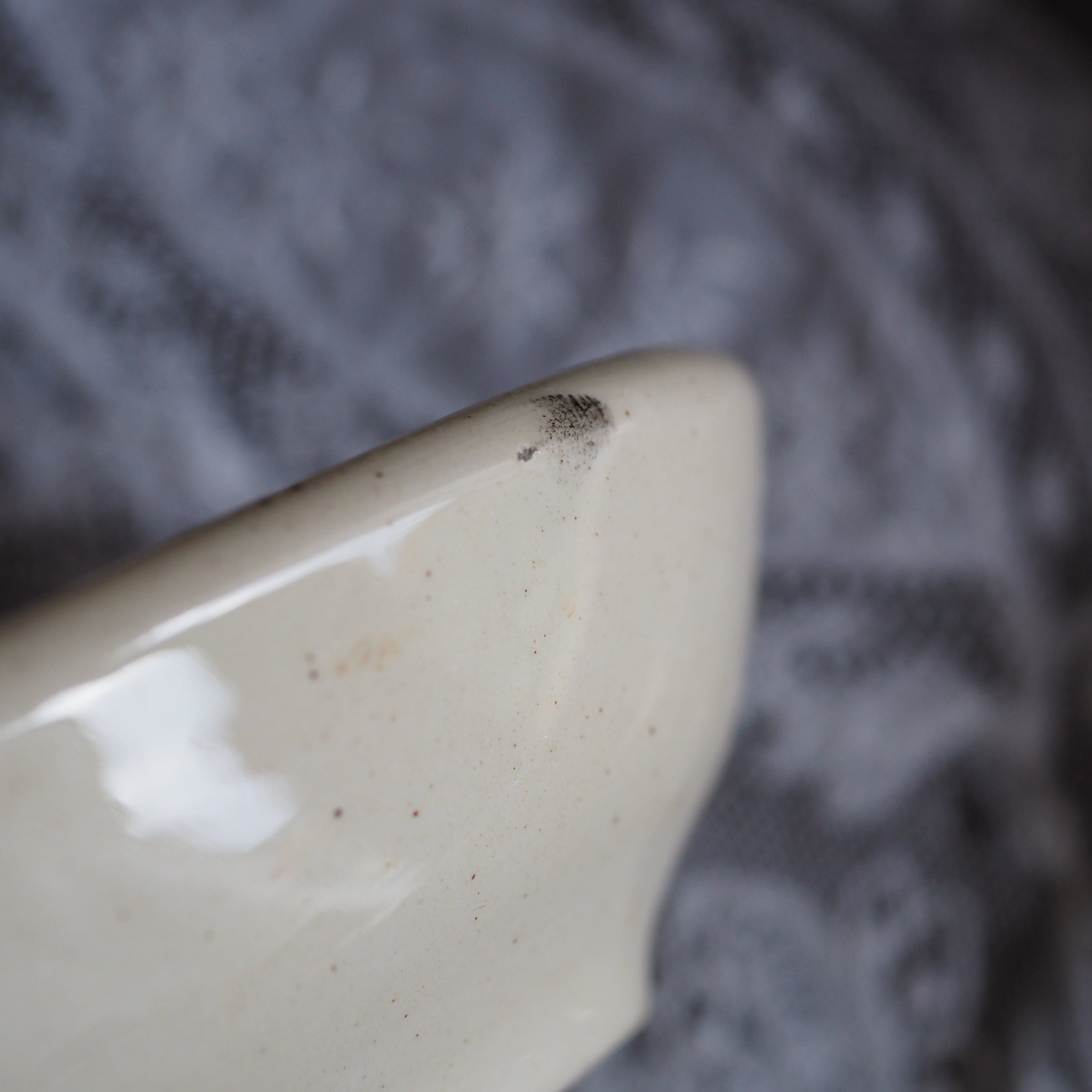 欠けやヒビはありませんが、一部インク移りが見られます(写真)。また100年ほどの時を経たものですので多少の汚れや小傷、絵柄の擦れ、剥がれなどはございます。アンティークにご理解の上お求めください。