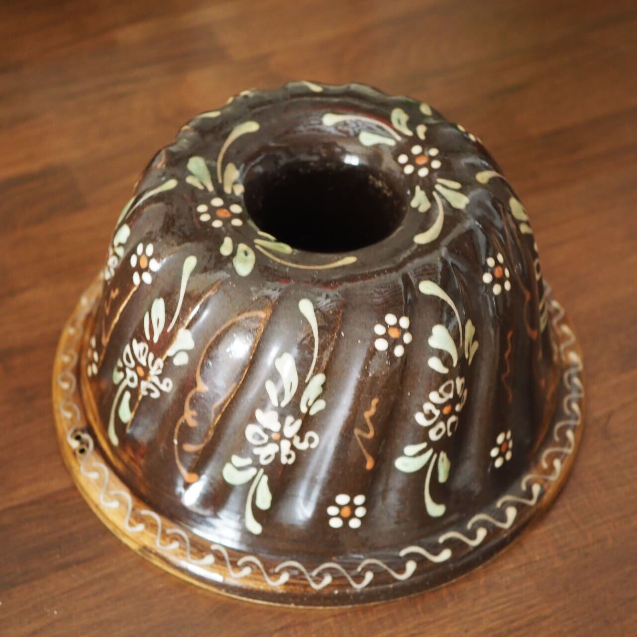 アルザス地方のスフレンハイム焼きのクグロフ型をご紹介します。ひもを通す穴が空いているので、紐を通して壁に飾ることもできます。フレンチカントリーなインテリアにお役立てください。もちろん、本来のお役目、クグログを焼くこともできます!