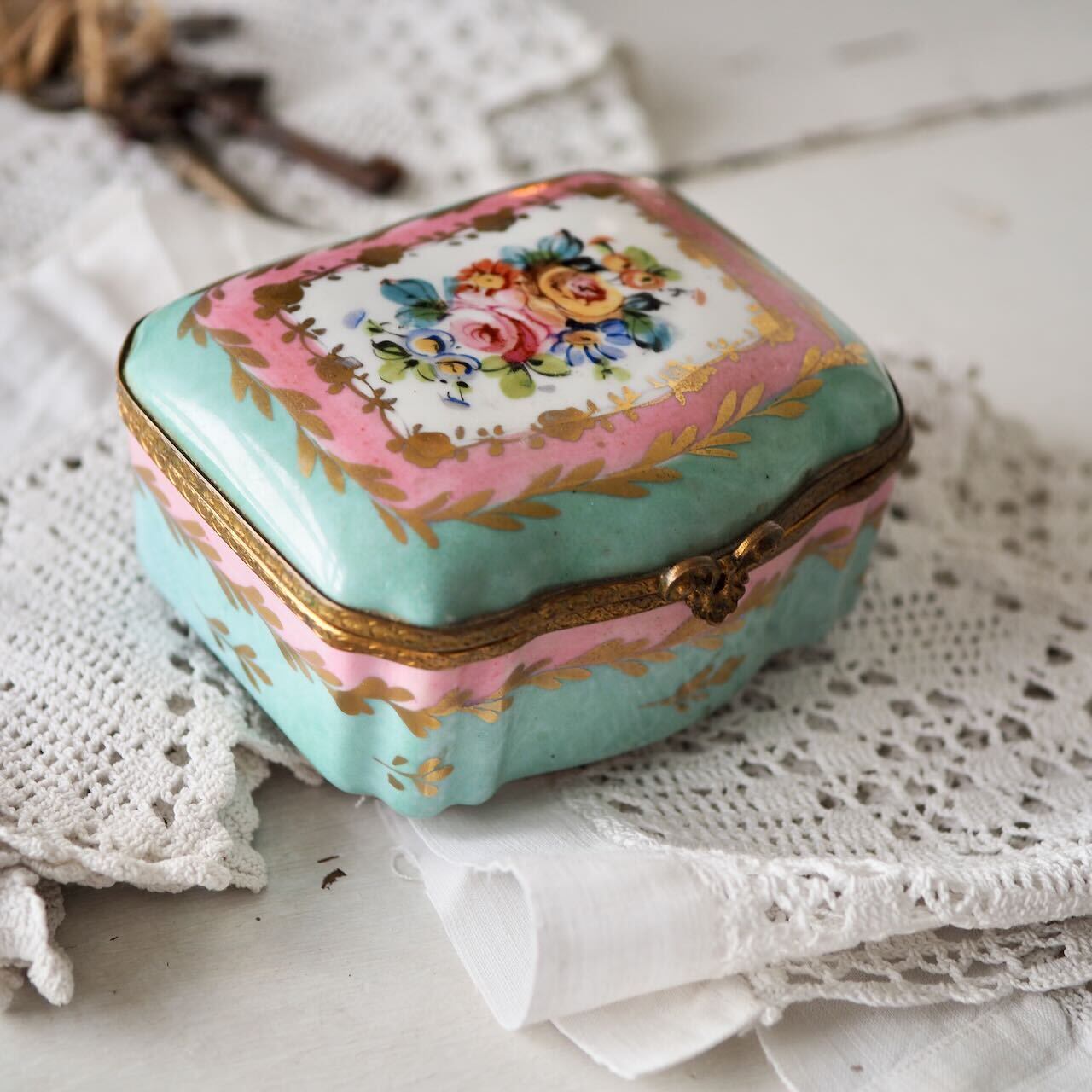 昔はジュエリーや薬、化粧品、つけぼくろ、裁縫道具などを入れていたリモージュボックス。こちらは一般的なリモージュボックスより大きめサイズになりますので、大きめジュエリーも入れられます。