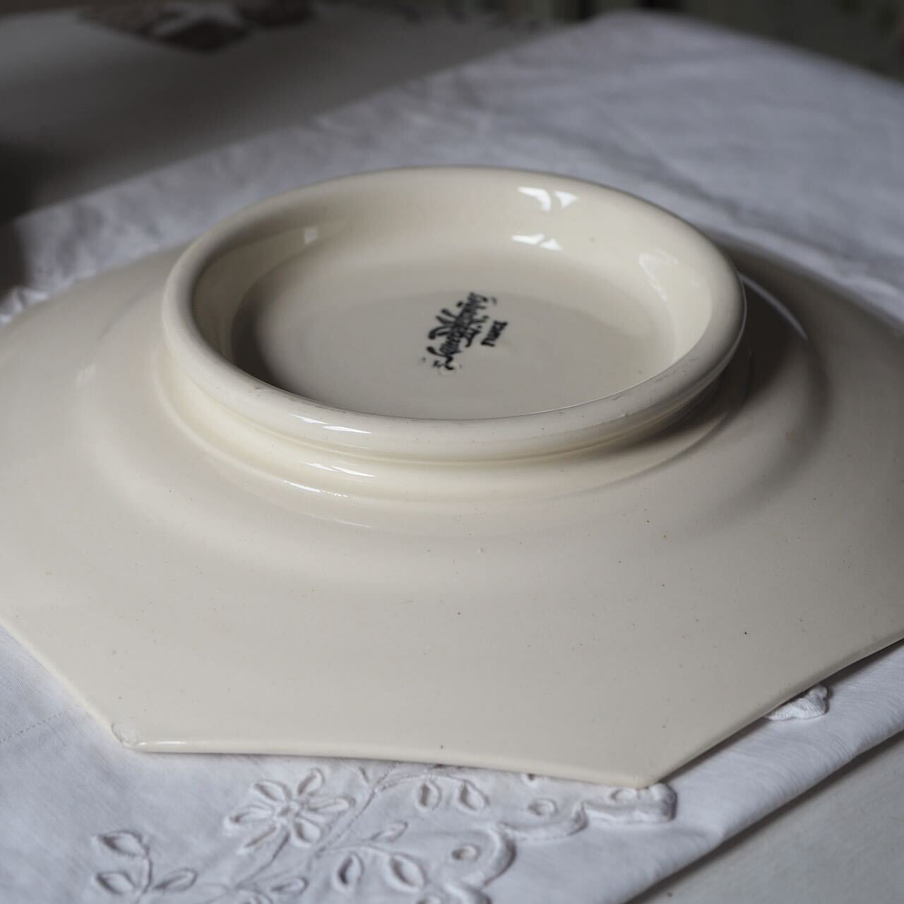 サルグミンヌのクリームのような柔らかなアイボリーの色調が大好きなのですが、こちらのオクトゴナルプレートもクレイユ・エ・モントローとは一味違う趣。あくまでも優しい風合いです。