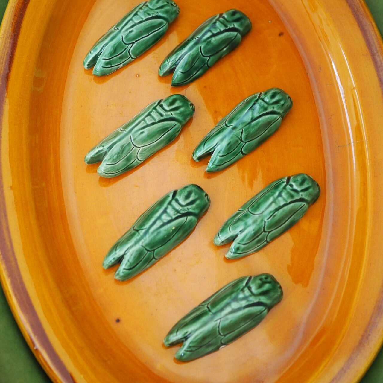 南フランスの幸福のシンボル、セミをかたどったナイフ・フォーク置きです。南仏陶器。