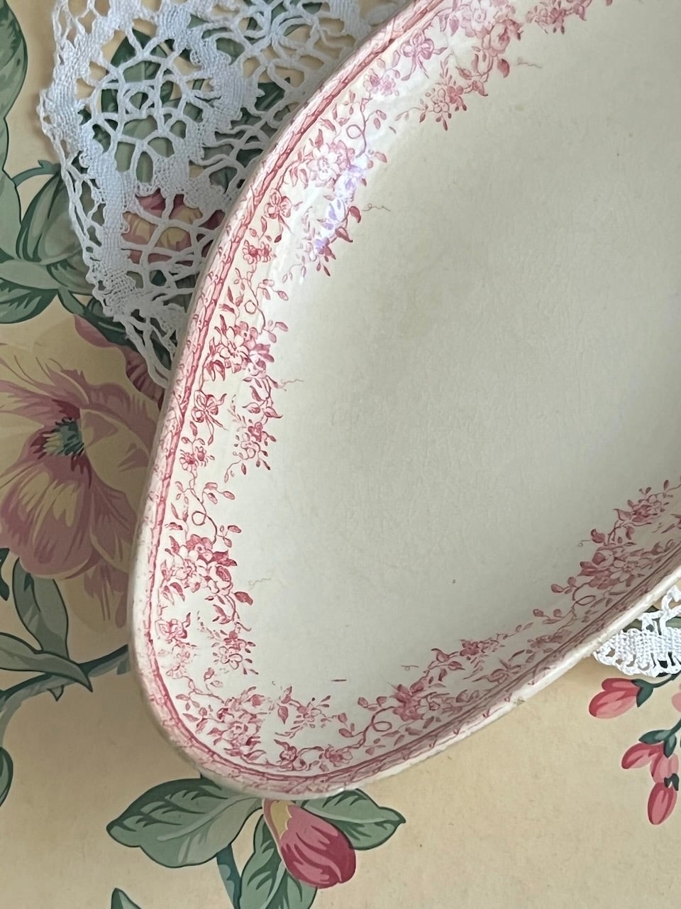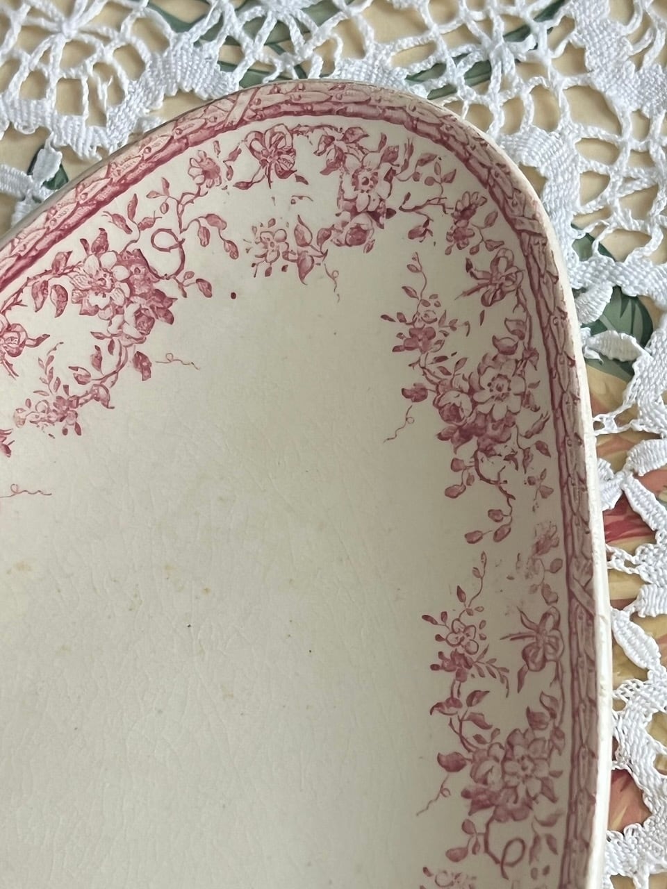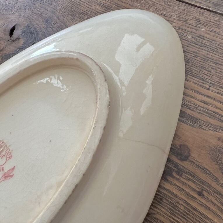 19世紀に金賞を受賞した、ジアンの美しいラヴィエ(オーバルプレート)です。絵柄のカスレ具合など、よい感じに時を経て、アンティークプレートらしい深みがしみじみ素敵です。