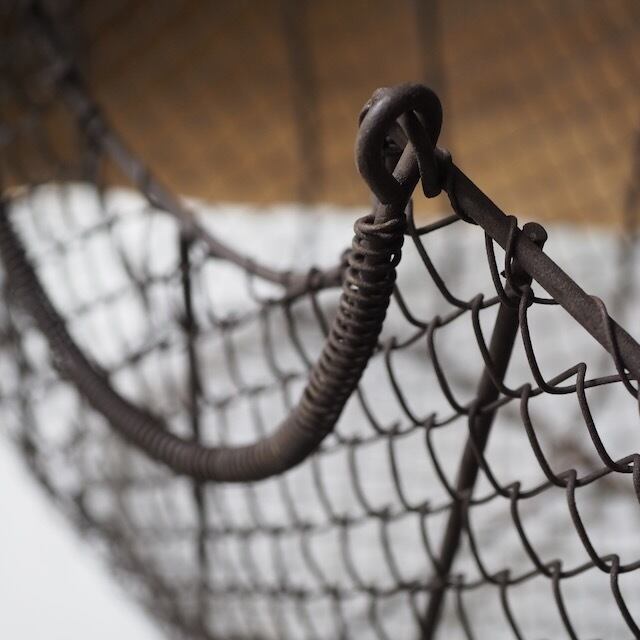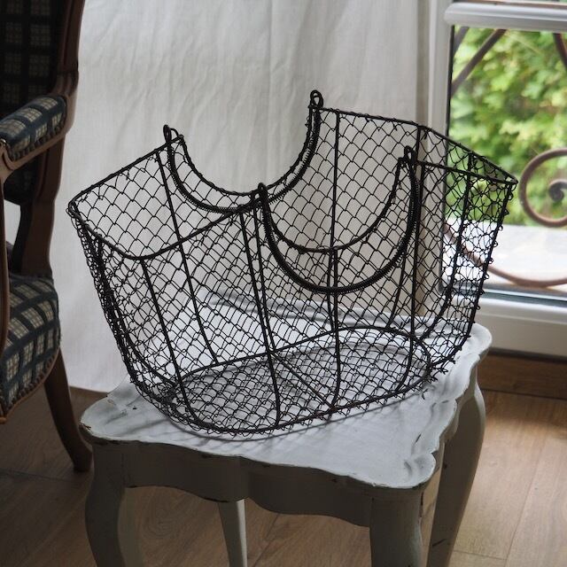 フランスのアイアン製のカゴです。繊細な編み目とちょっと無骨な金属のコントラストが雰囲気あります。アイアンもよい感じに時が感じられて、古いものがお好きな方にはたまらない風合いだと思います。