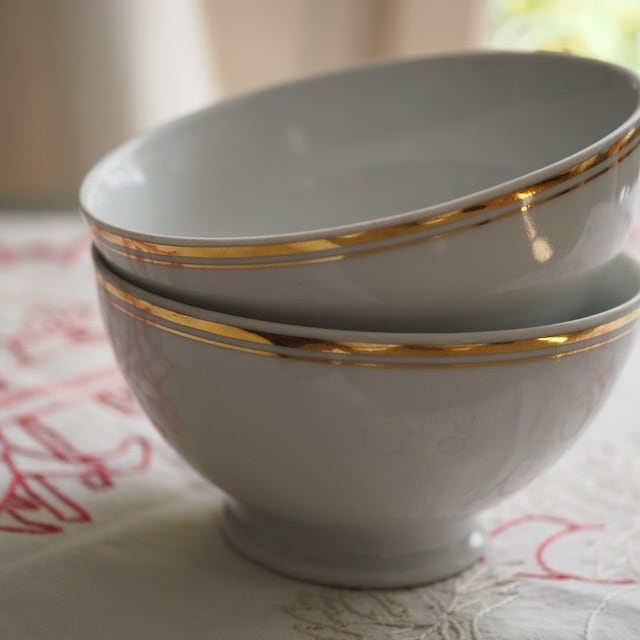 【2個セット】小さめカフェオレボウル 白xゴールド