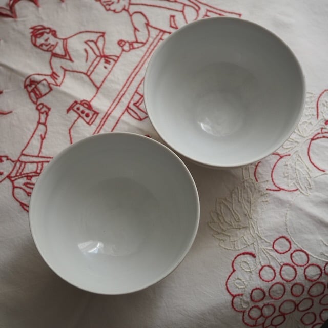 直径11㎝のちょっと小さめカフェオレボウルです。お揃いの二つを、副菜やおつまみを入れてテーブルにのせるとリズム感が出て素敵なセッティングができます。
