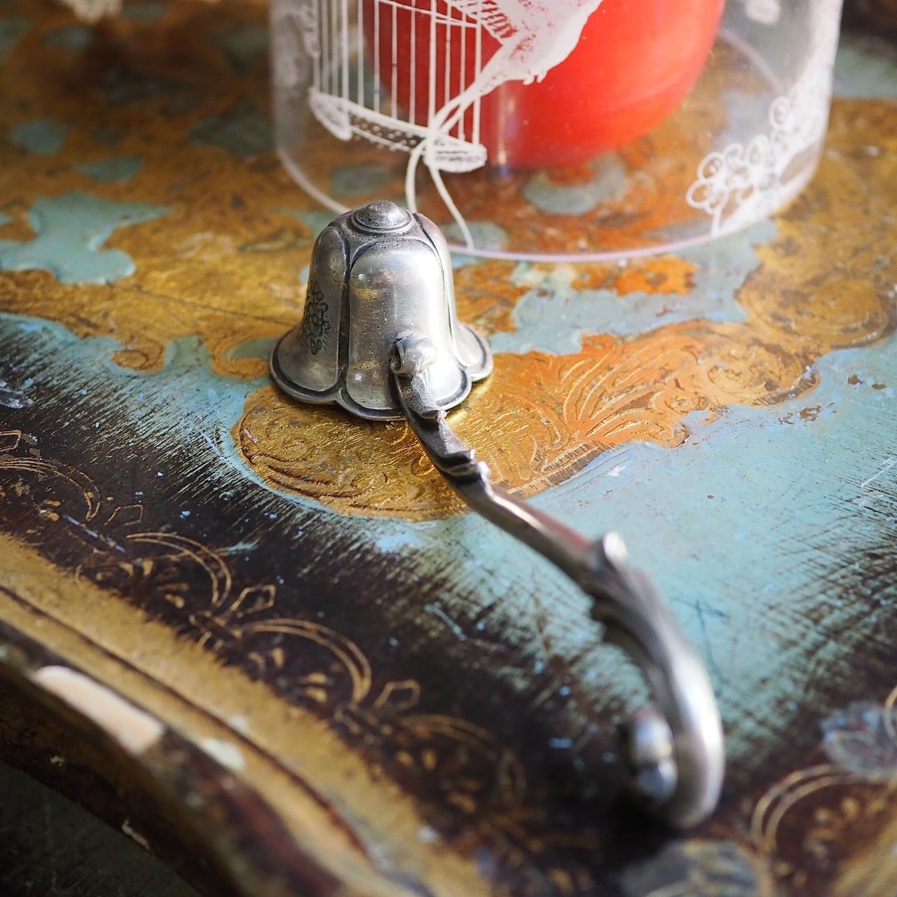こちらはピューター製で、美しいベル型。とても優雅なデザインです。
