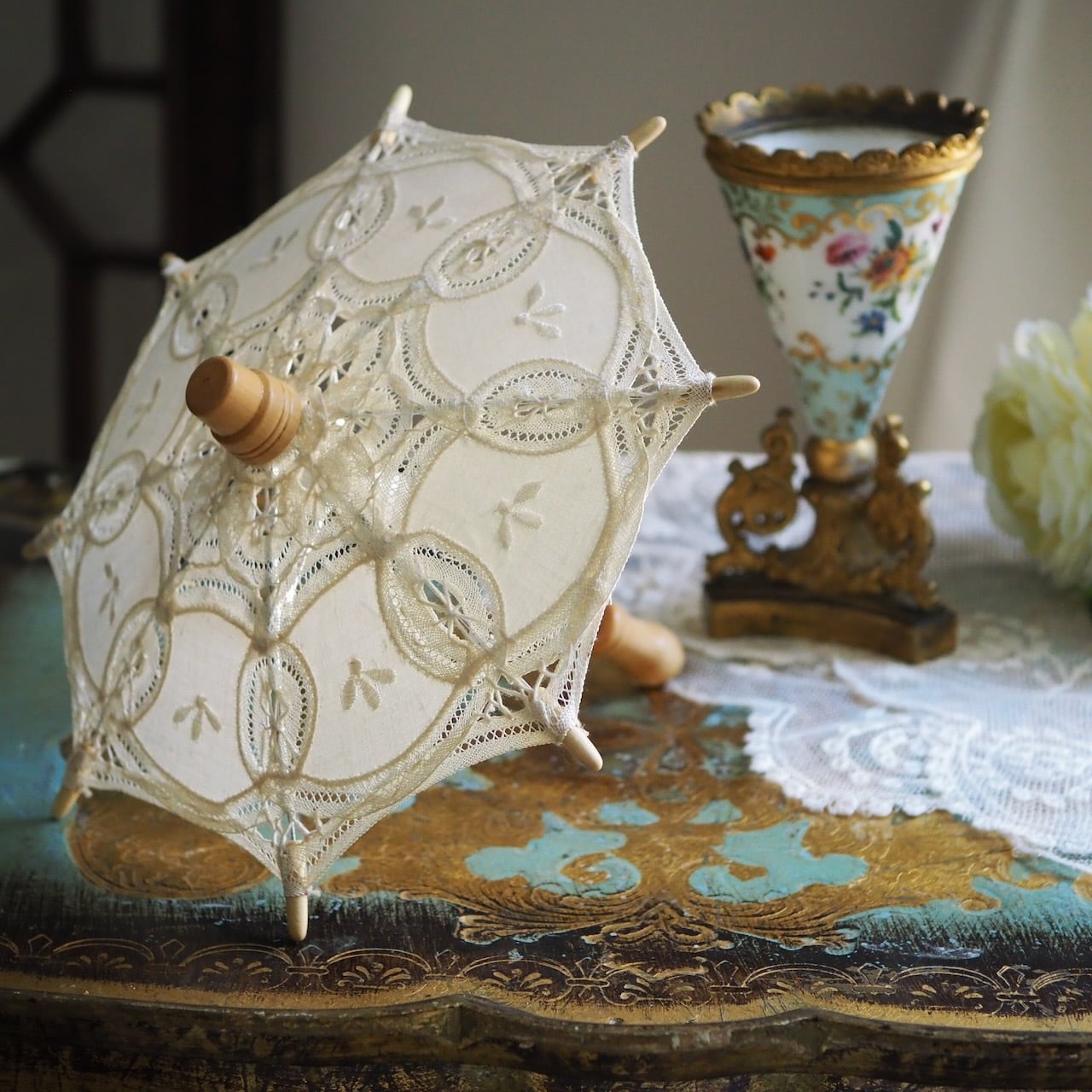 フランス製ハンドメイドレースのドール用アンブレラ