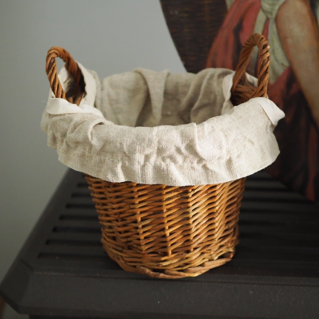 フランスの暮らしに欠かせない、リネン布付きのパニエをご紹介します。南仏のブロカントで見つけました。さほど古い物ではありませんが、とても愛らしい小さなパニエで、キッチンに二つセットで置いておいたらまちがいなくかわいいです!