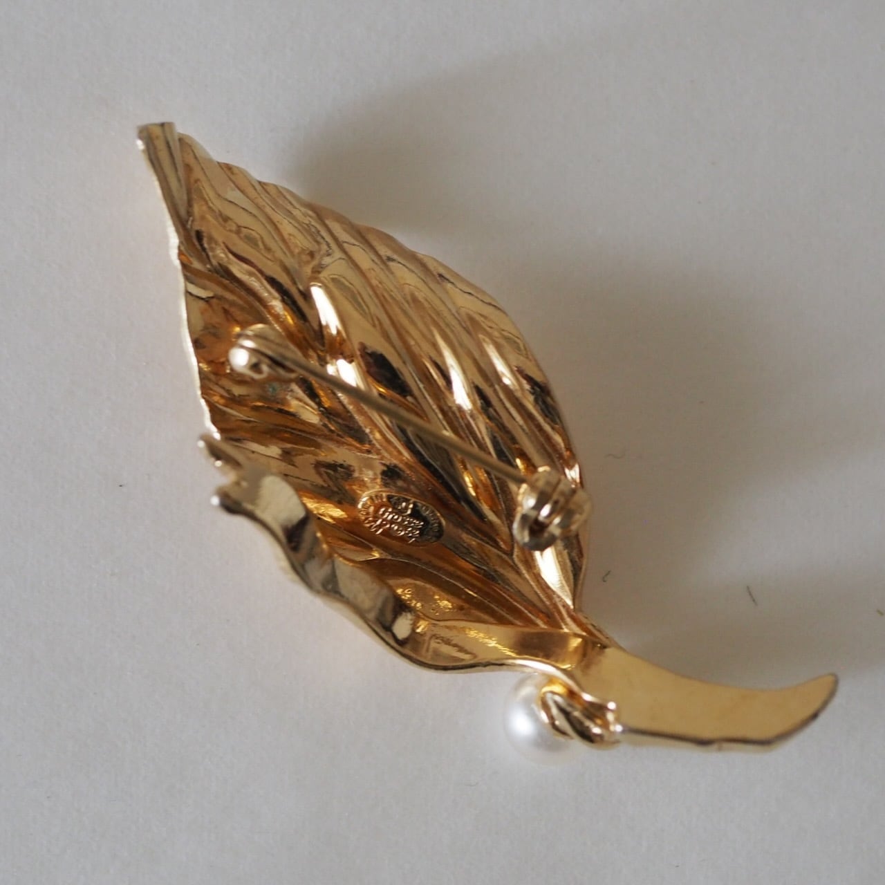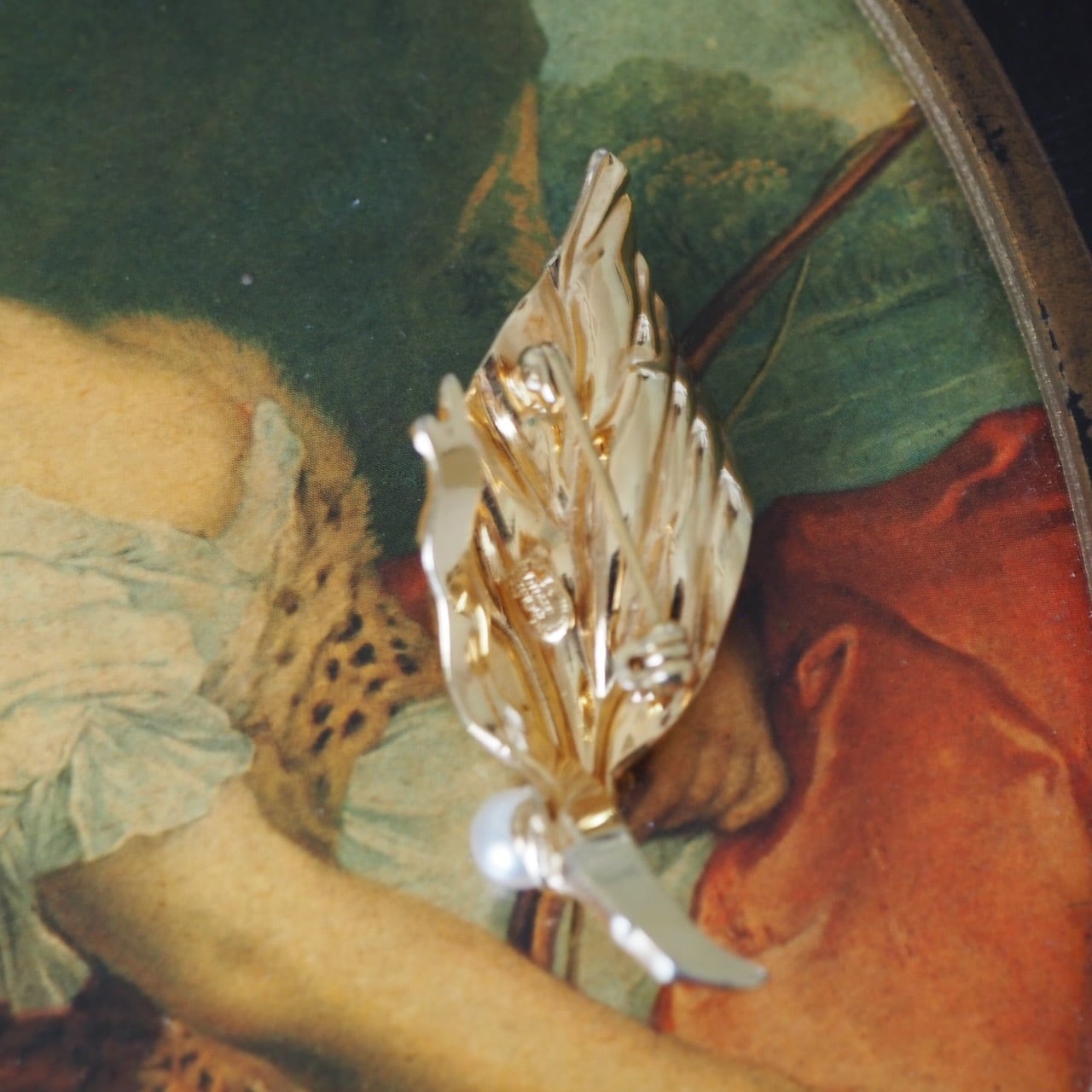 Diorのジュエリーを手がけていた工房らしく、立体的な葉のモチーフに一粒のパールを添えた繊細で上品なデザインです。