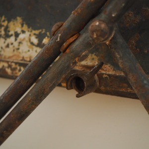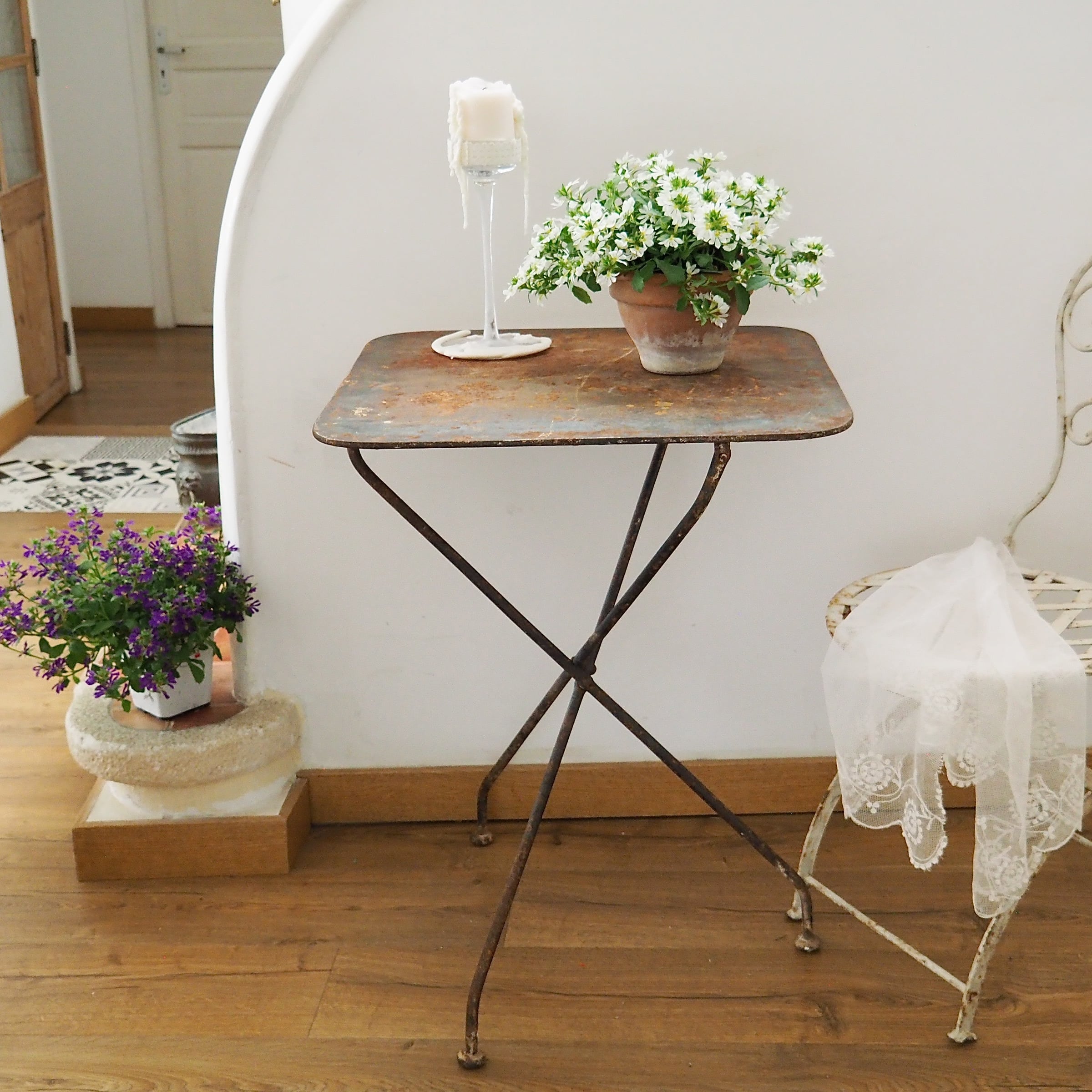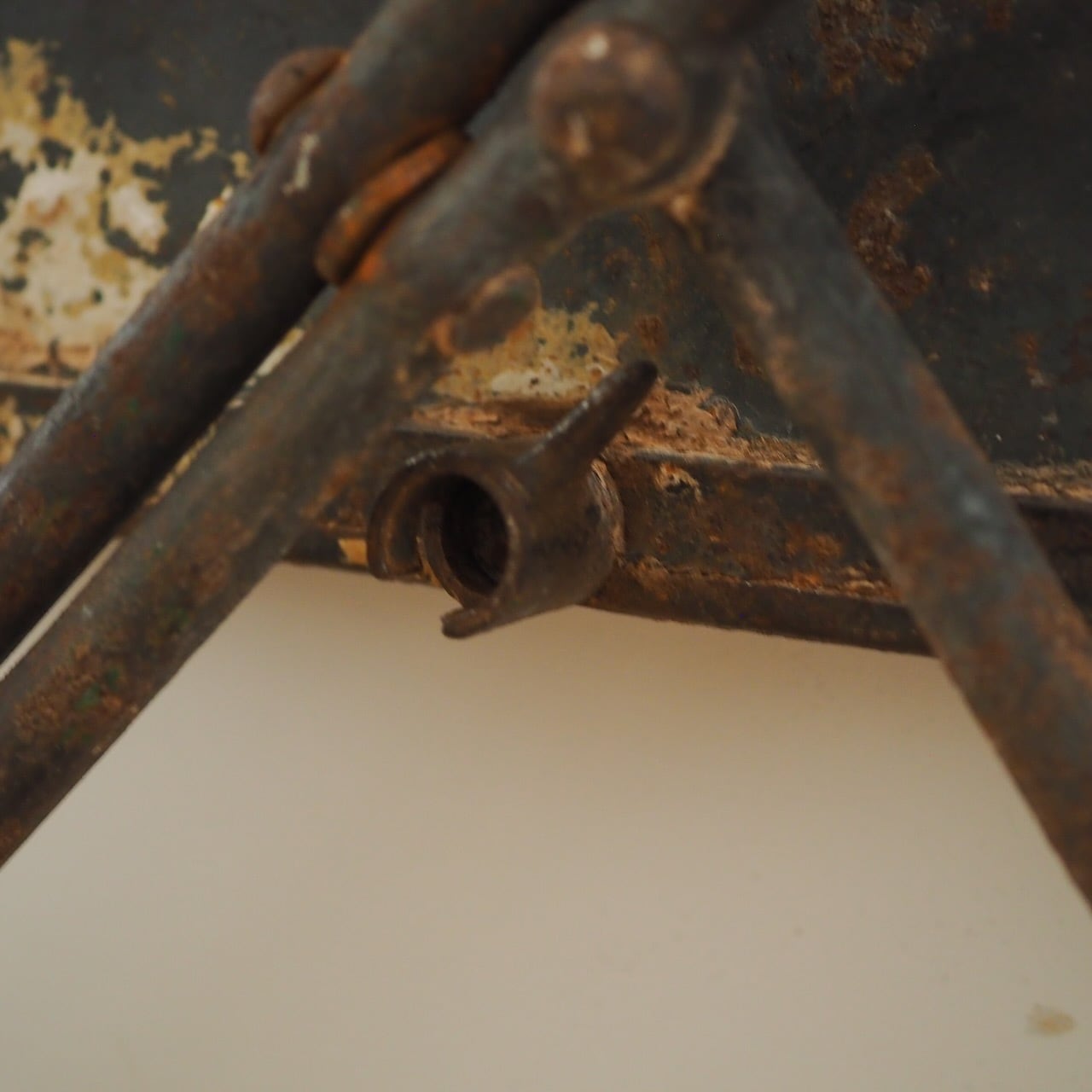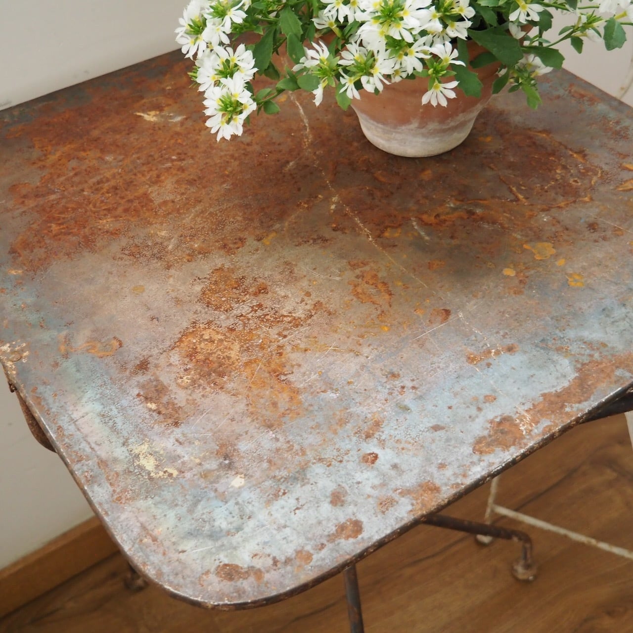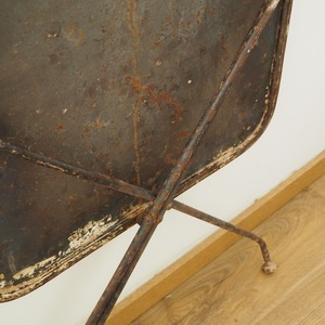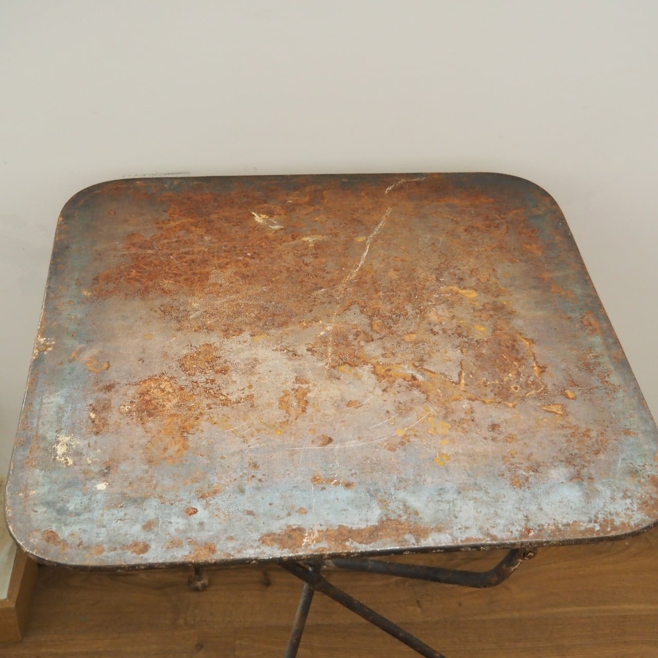 長い時間を経て錆びた鉄の表情が美しい、味わいのある折りたたみテーブル。