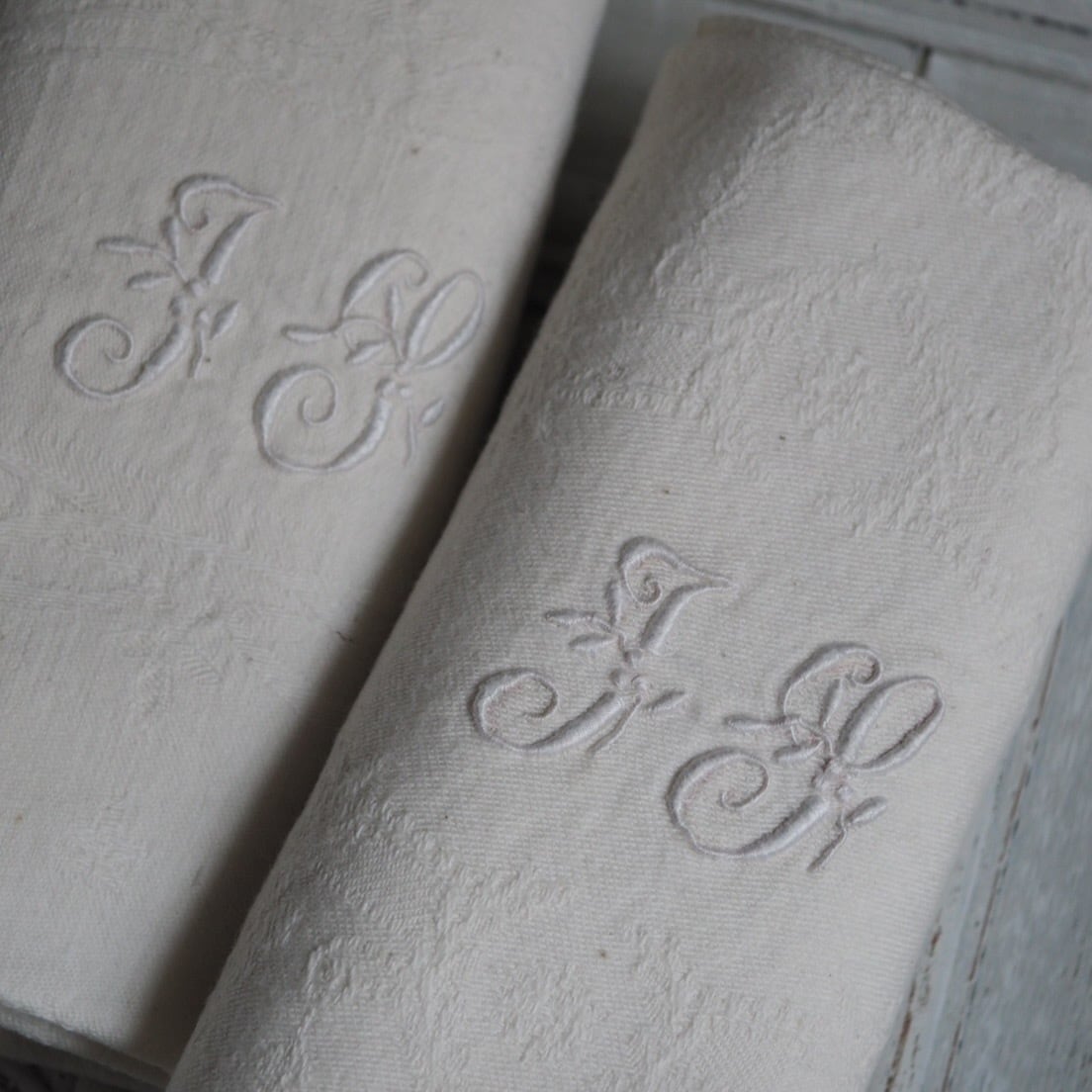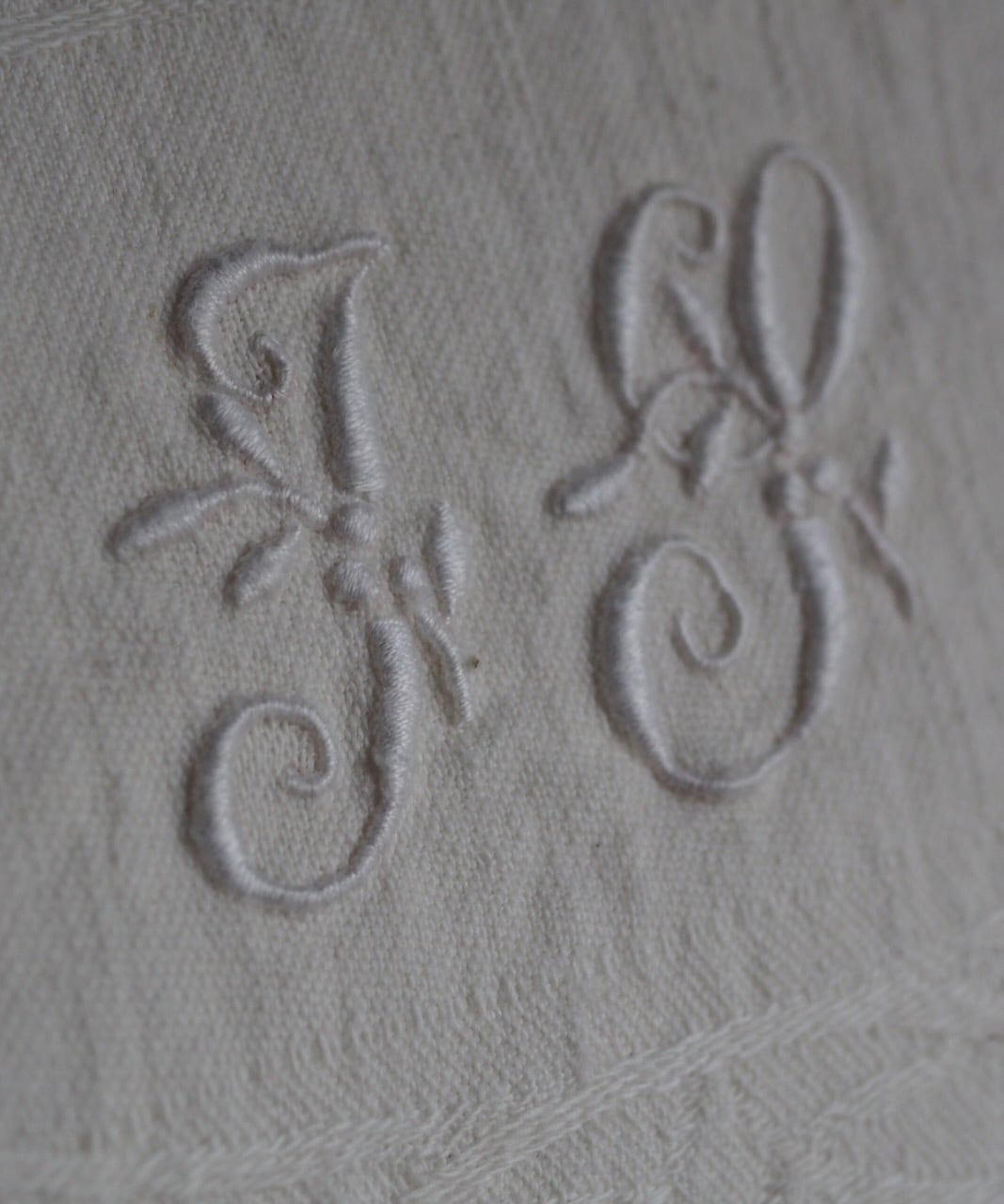 手刺繍リネン モノグラム J T エクリュ