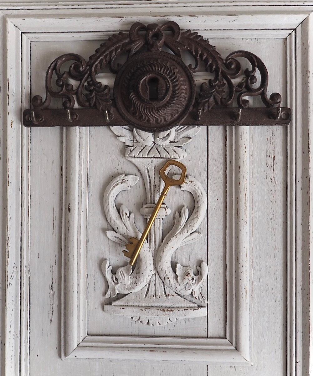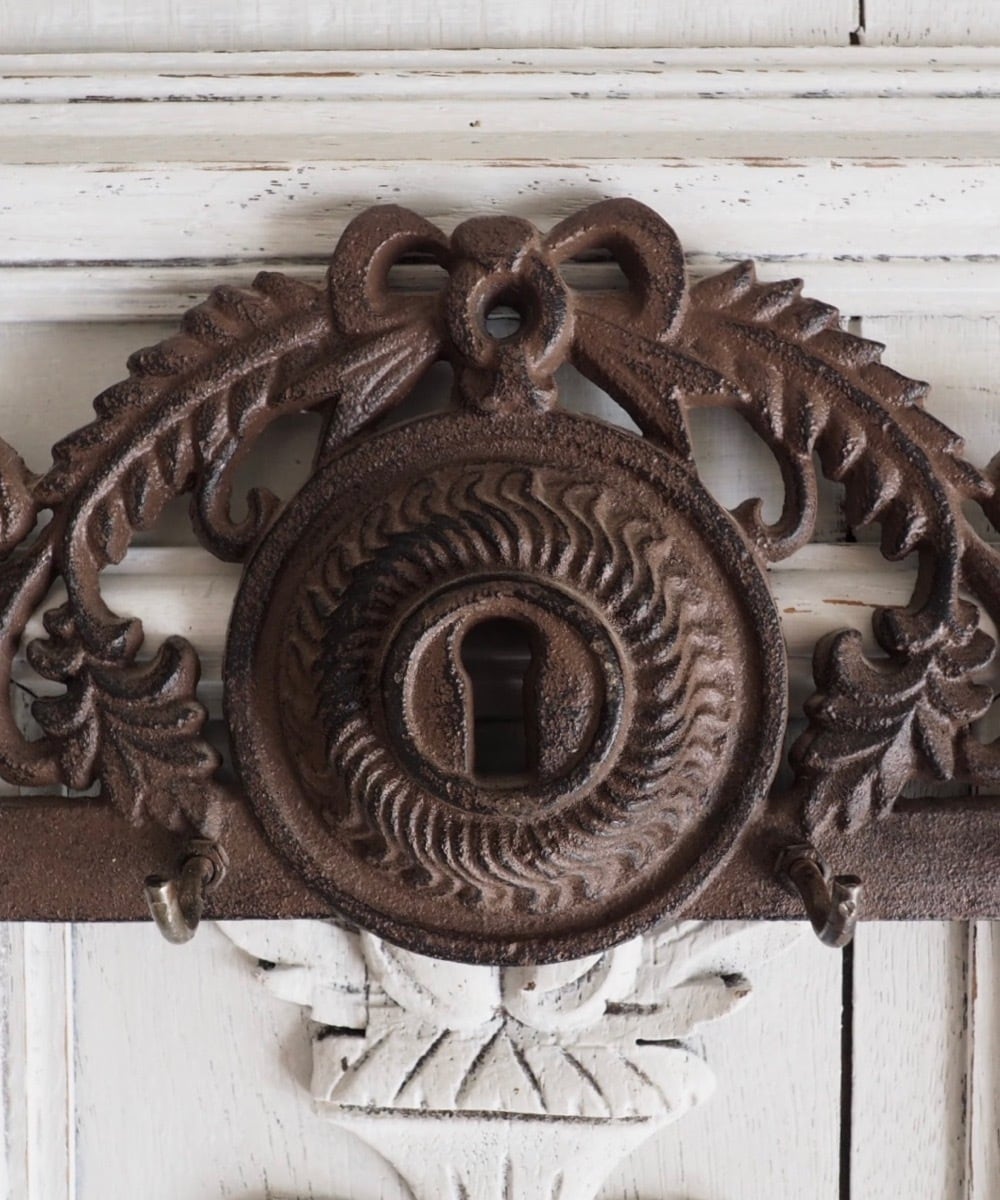 中央にリボンと鍵穴がデザインされ、とてもおしゃれなアイアンフック。