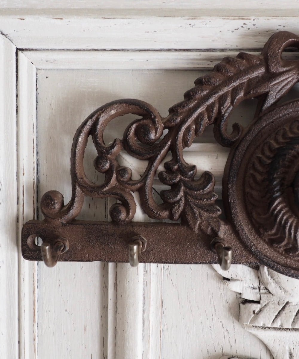 このデザインなら、キッチンでトルション(ふきん)をかけたり、玄関で鍵をかけたり、ドライフラワーを吊るしたりと、さまざまな場所でご利用いただけます。重厚感がありますが、リボン飾りのデザインによって軽やかで女性的なイメージを醸しています。