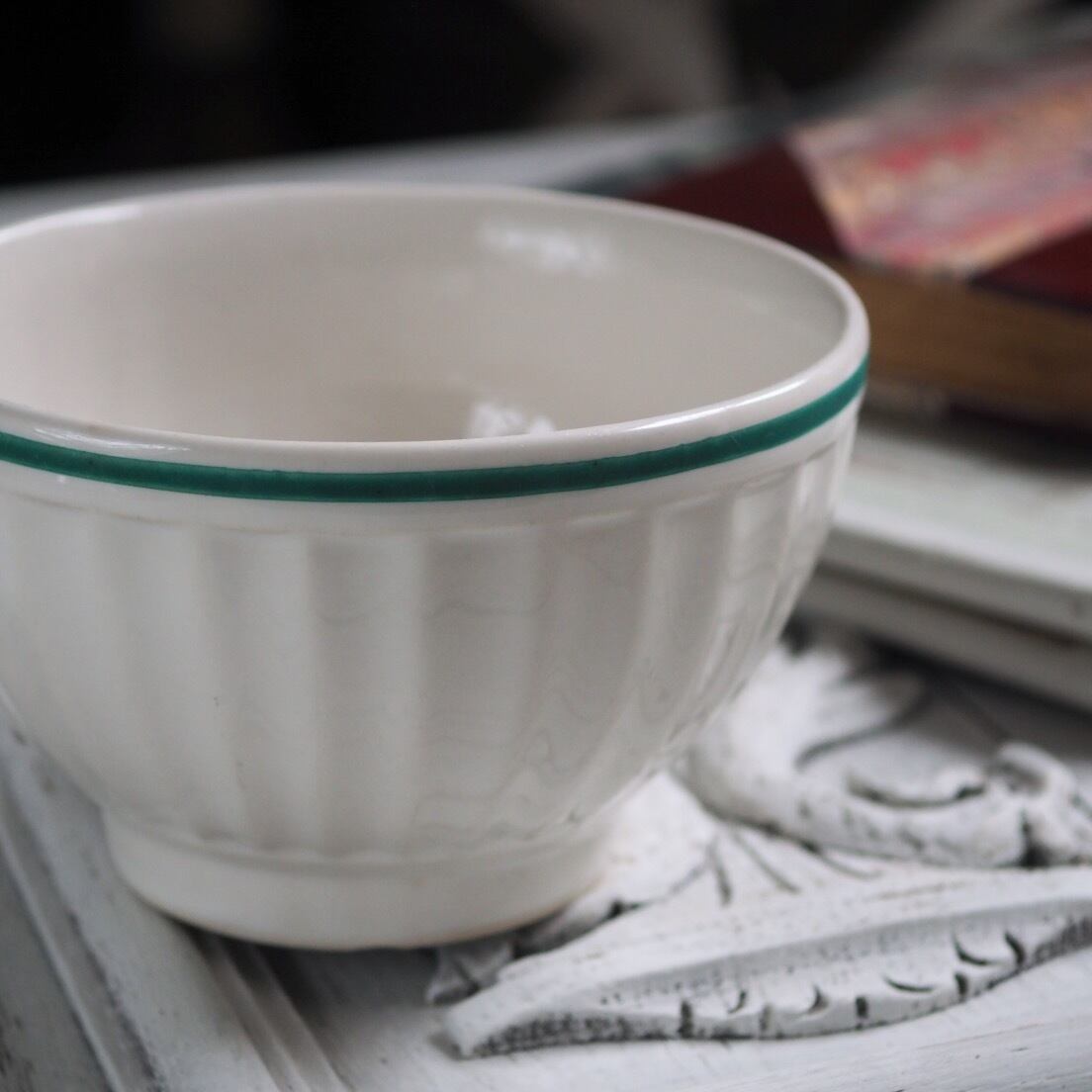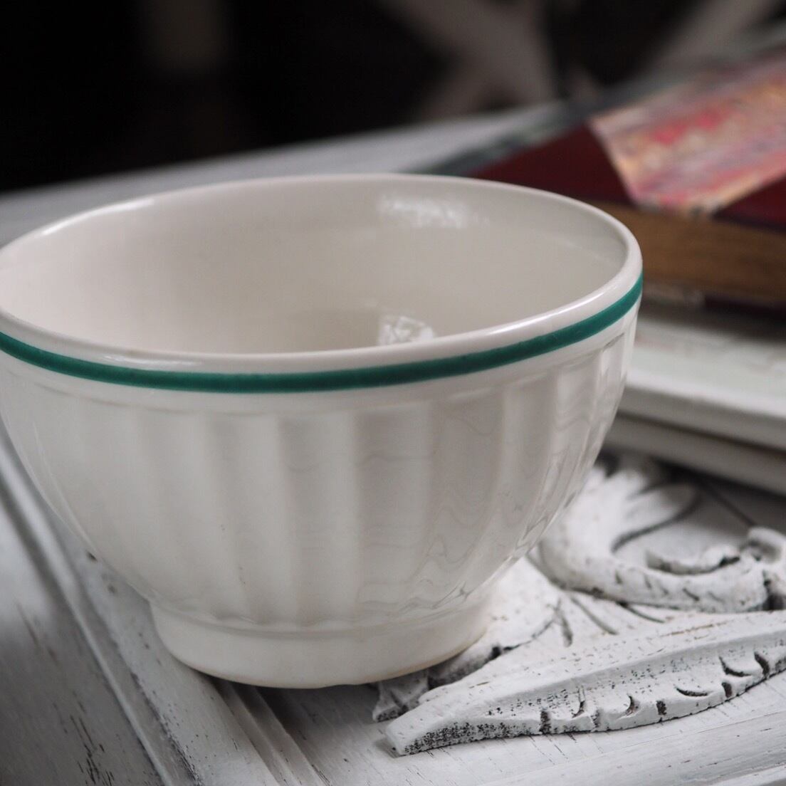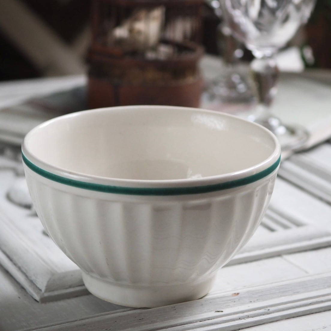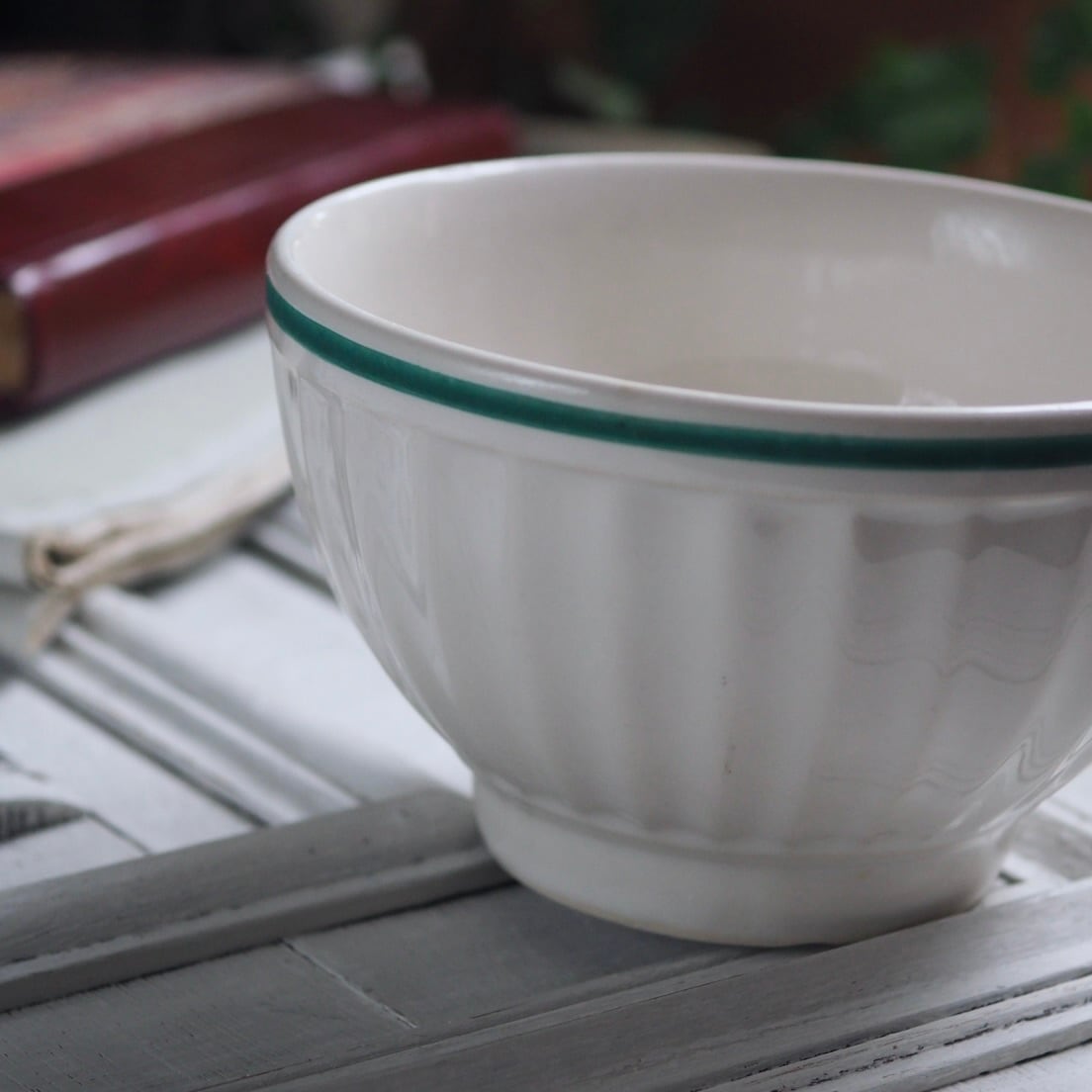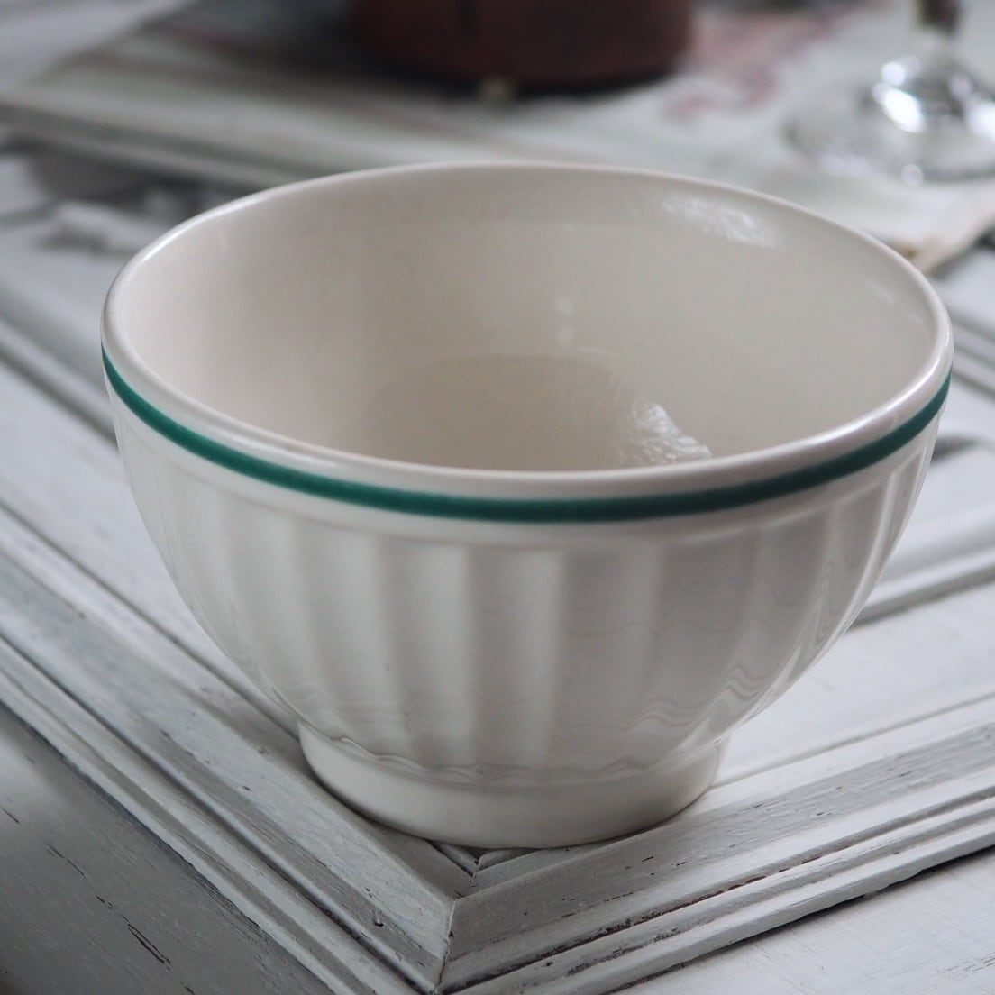 グリーンのラインが一本入っただけのシンプルなカフェオレボウル 。一生使っても飽きないと思わせるシンプルさがいいですね。