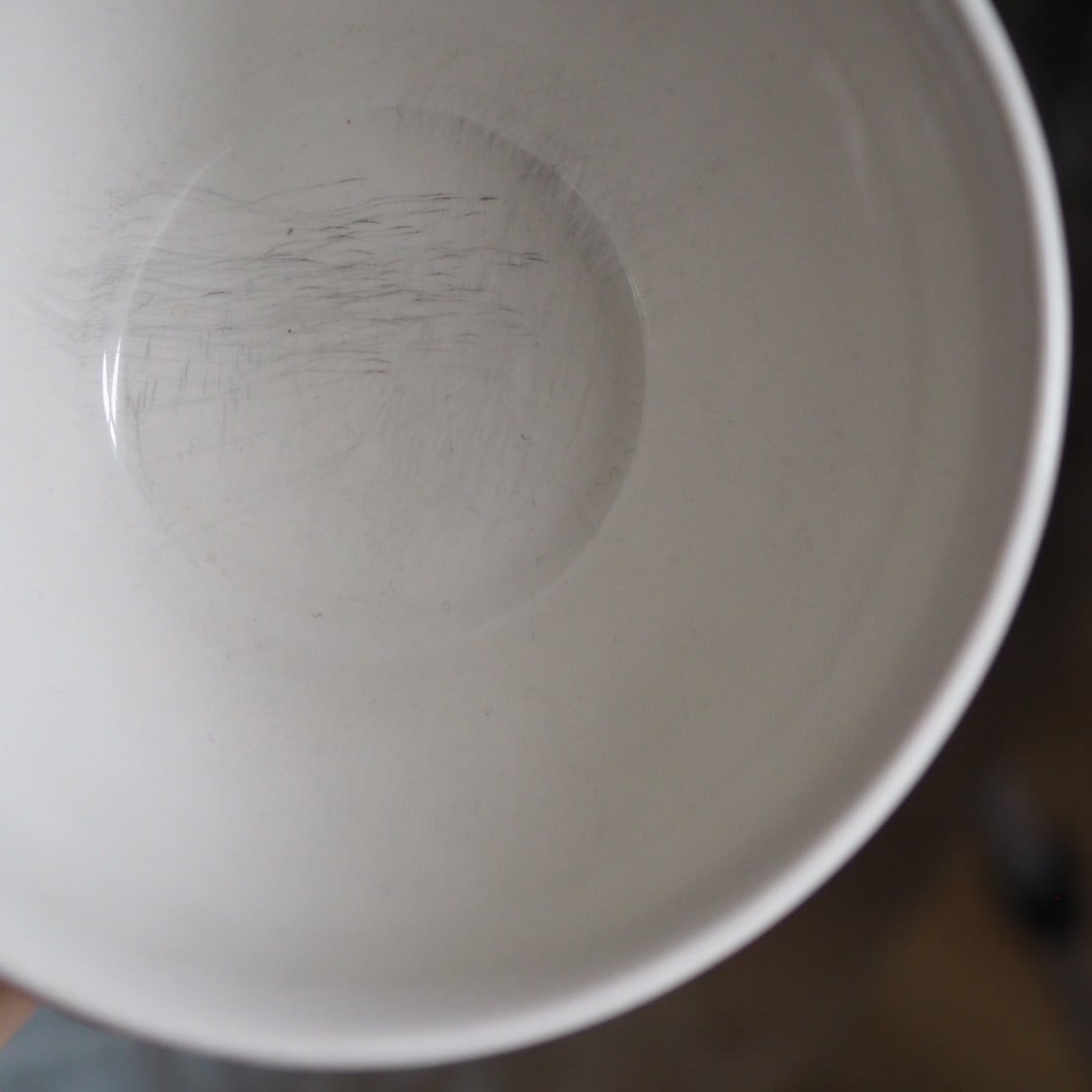 こちらは中にスプーンの跡がついています。写真でご確認ください。昔はボウルはカフェではなくスープ用だったので、古いものにはこのような跡がついていることが多いです。