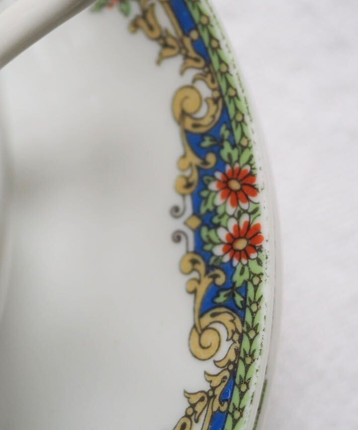 ソーサーに一部、釉薬がのっていない部分があり、ソーサーの裏面の高台に数カ所ミクロサイズの小さなチップがみられます。