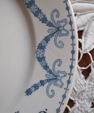 リボンのモチーフがとても可憐なプレートです。とても1900年くらいに作られたものと思えないデザインですが、120年前の人も、こんなラブリーなテイストが好きだったなんて感激です。