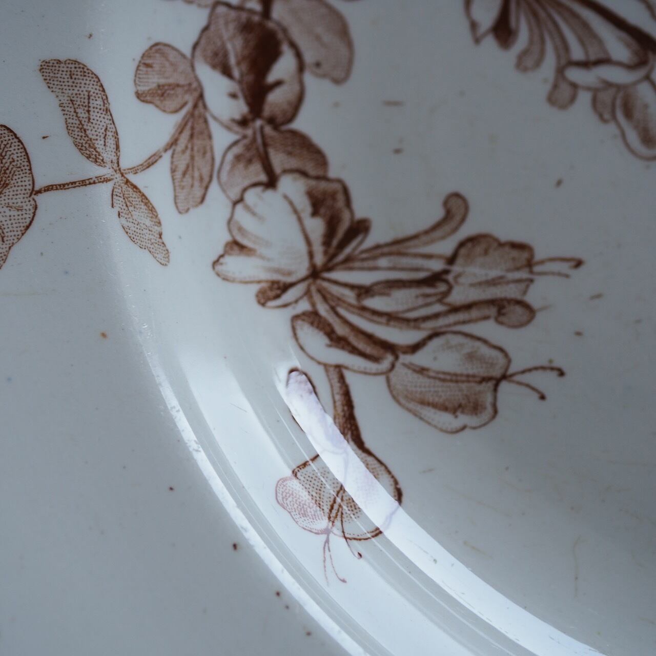 細かいカトラリー傷が見られますが、ヒビや欠けなどのダメージはなく、アンティーク品としてはたいへん良好なコンディションです。120年もの時を経たものですので、細かな汚れや傷、釉薬のムラなどはございます。アンティークにご理解の上、お求めください。
