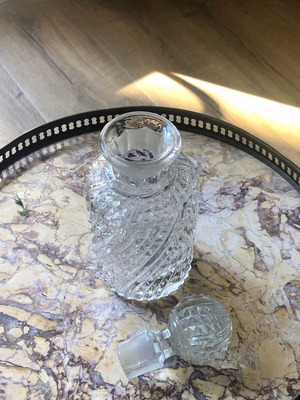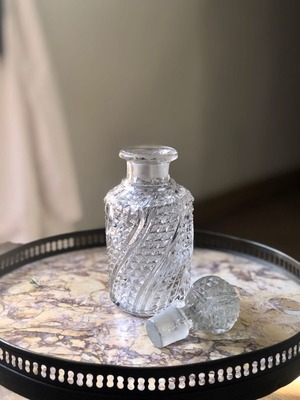 バカラのパフュームボトルに似た、アンティークの香水瓶。こんなボトルに香水を入れたら素敵ですが、あまり実用的ではないので、一輪挿しはもちろん、ディフューザー用の容器にしたり、バスソルトやバスオイルを入れたりしてご活用ください。