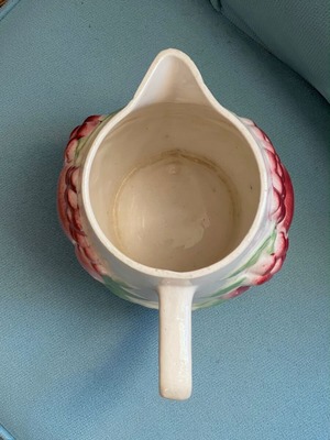 注ぎ口付近に小さなチップがいくつかあります。それ以外は釉薬のつやもしっかり残り、古いアンティーク品としてはたいへん良好なコンディションですが、時を経たものですので多少の汚れや傷などはございます。ご理解の上、お買い求めください。