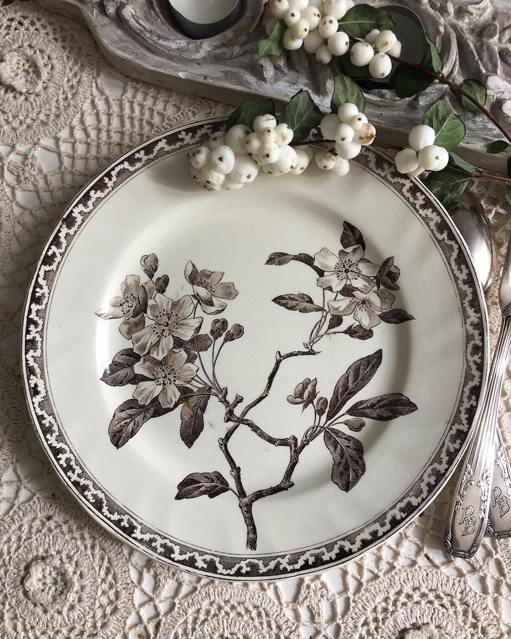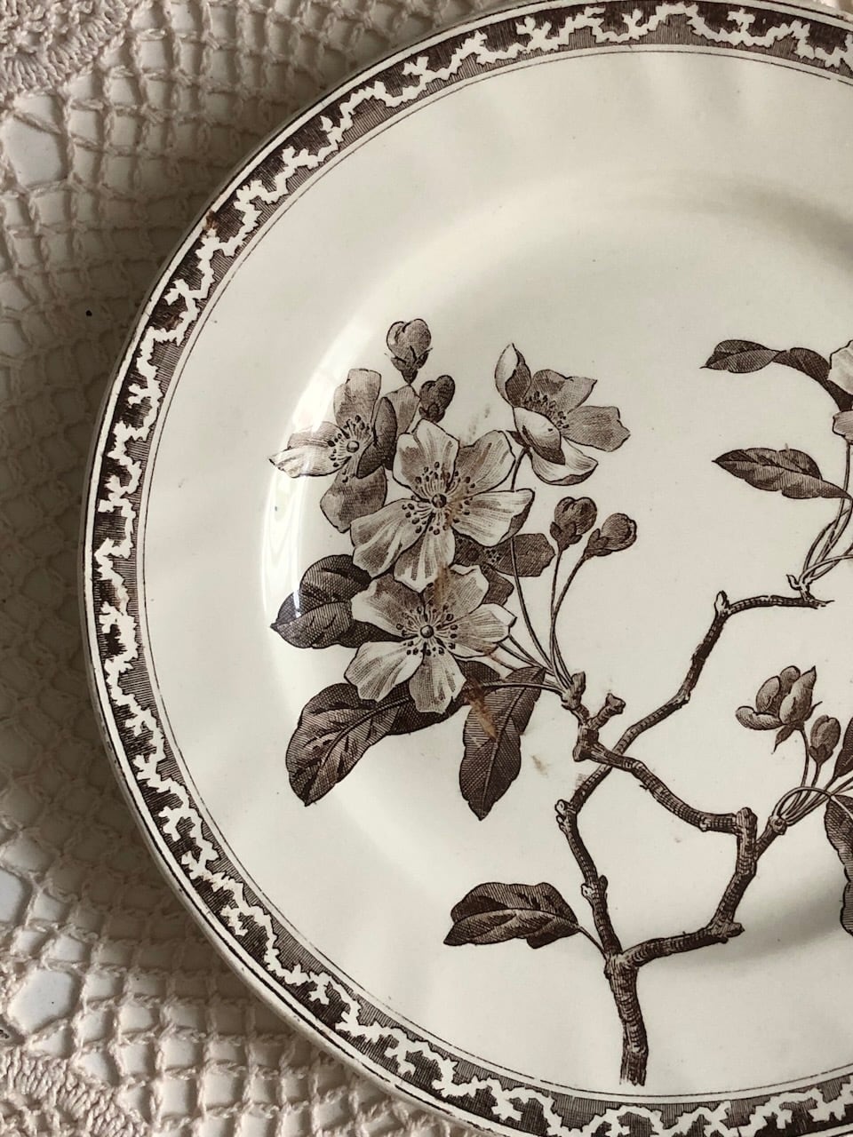 クレイユ・エ・モントロー「りんごの花」セピア色プレート
