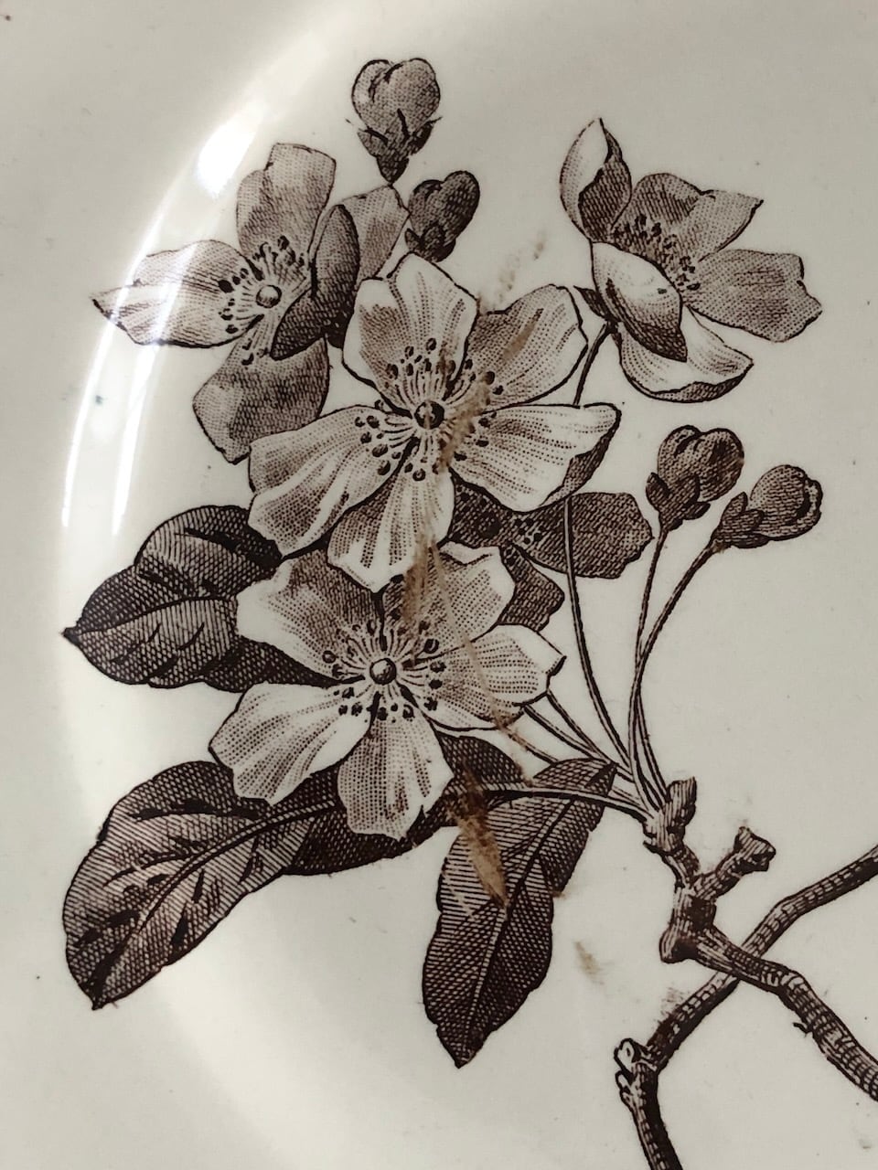 左側にインクのスレのようなものがみられますが、釉薬の下なのでプリントの際にすれたあとのようです。