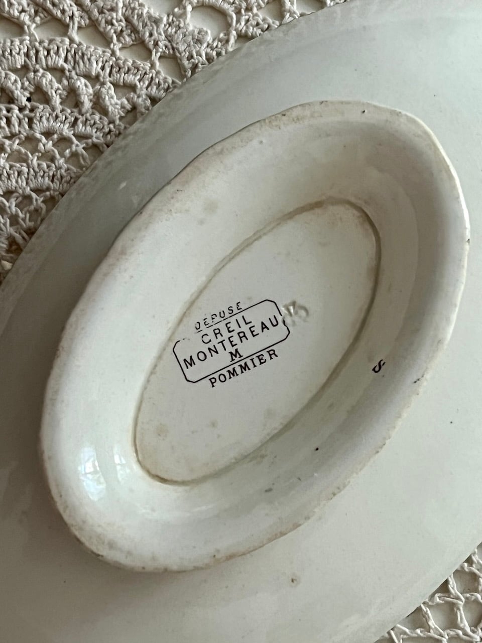 カトラリー傷はほんの少しだけ。たいへん良いコンディション。貫入もなく、艶もしっかり残っています。120年もの時を経たものですので、多少のシミなどはございます(裏面)。