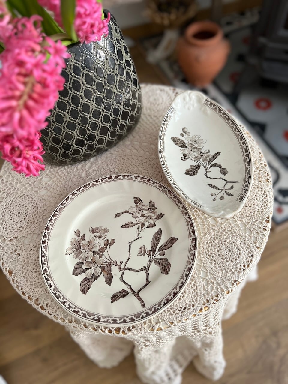 台座がついた、特別感あふれるセピア色のラヴィエ(オーバルプレート)です。