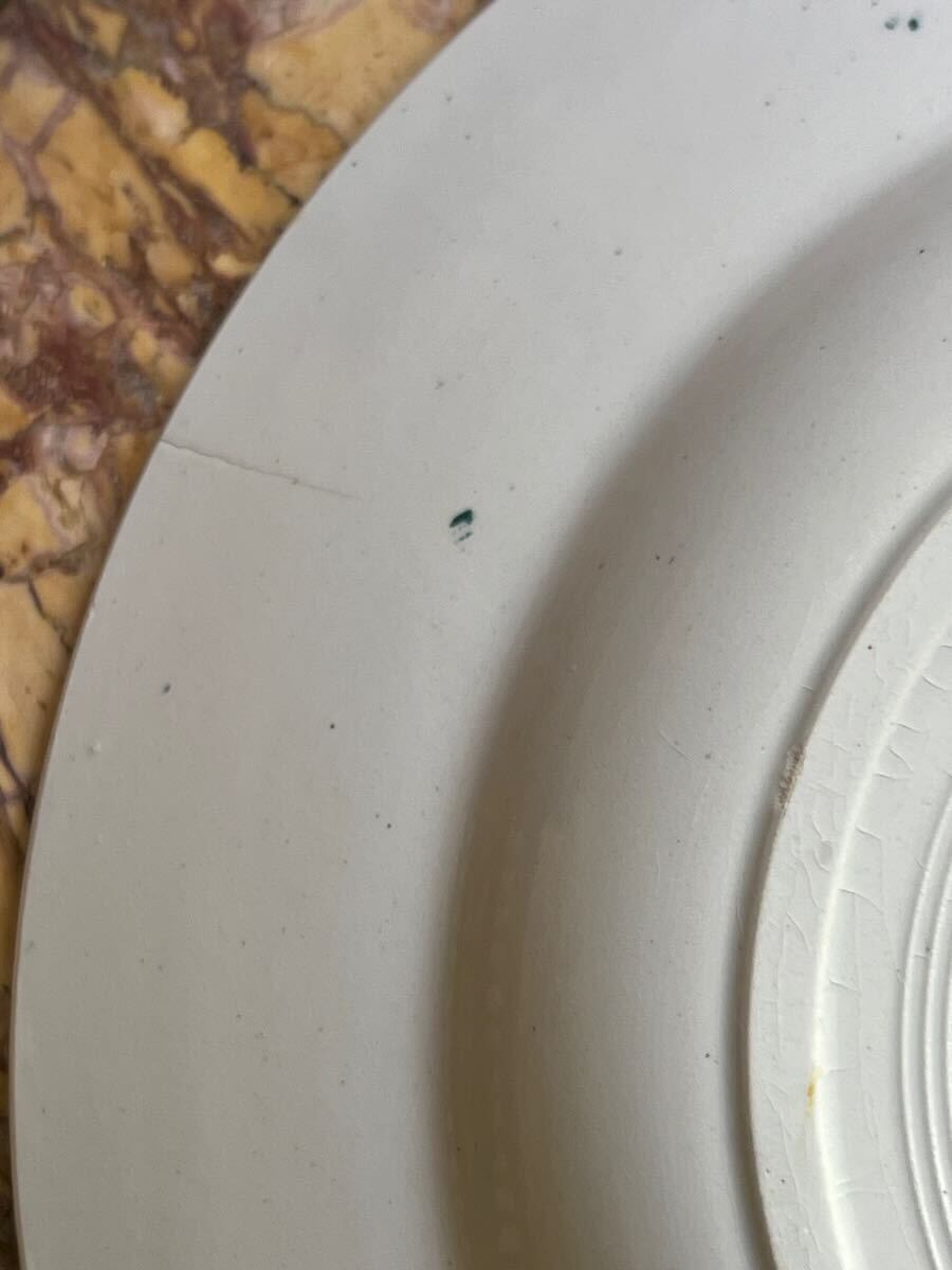 細いヘアラインが2カ所見られます。カトラリー傷はほんのわずか。艶はしっかり残り、ツヤツヤです。アンティークにご理解の上、お求めください。