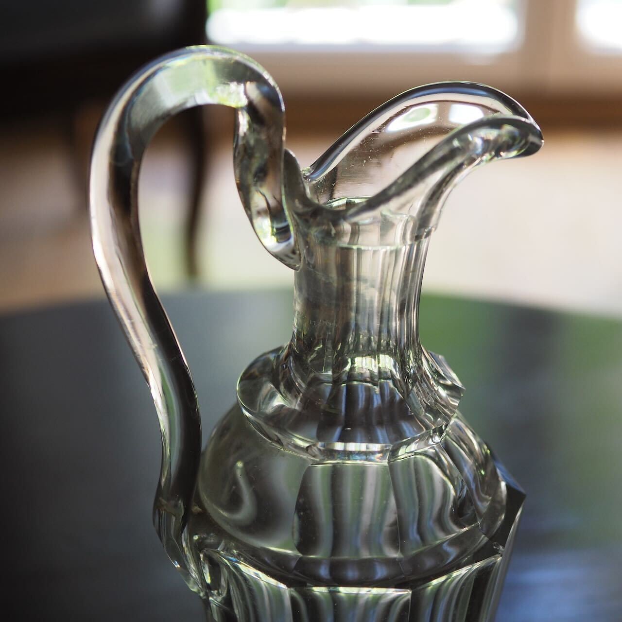 ベランダで咲いた花や、散歩の途中で手折った野の花を挿れるだけで絵になってしまう、クリスタルのデキャンタです。