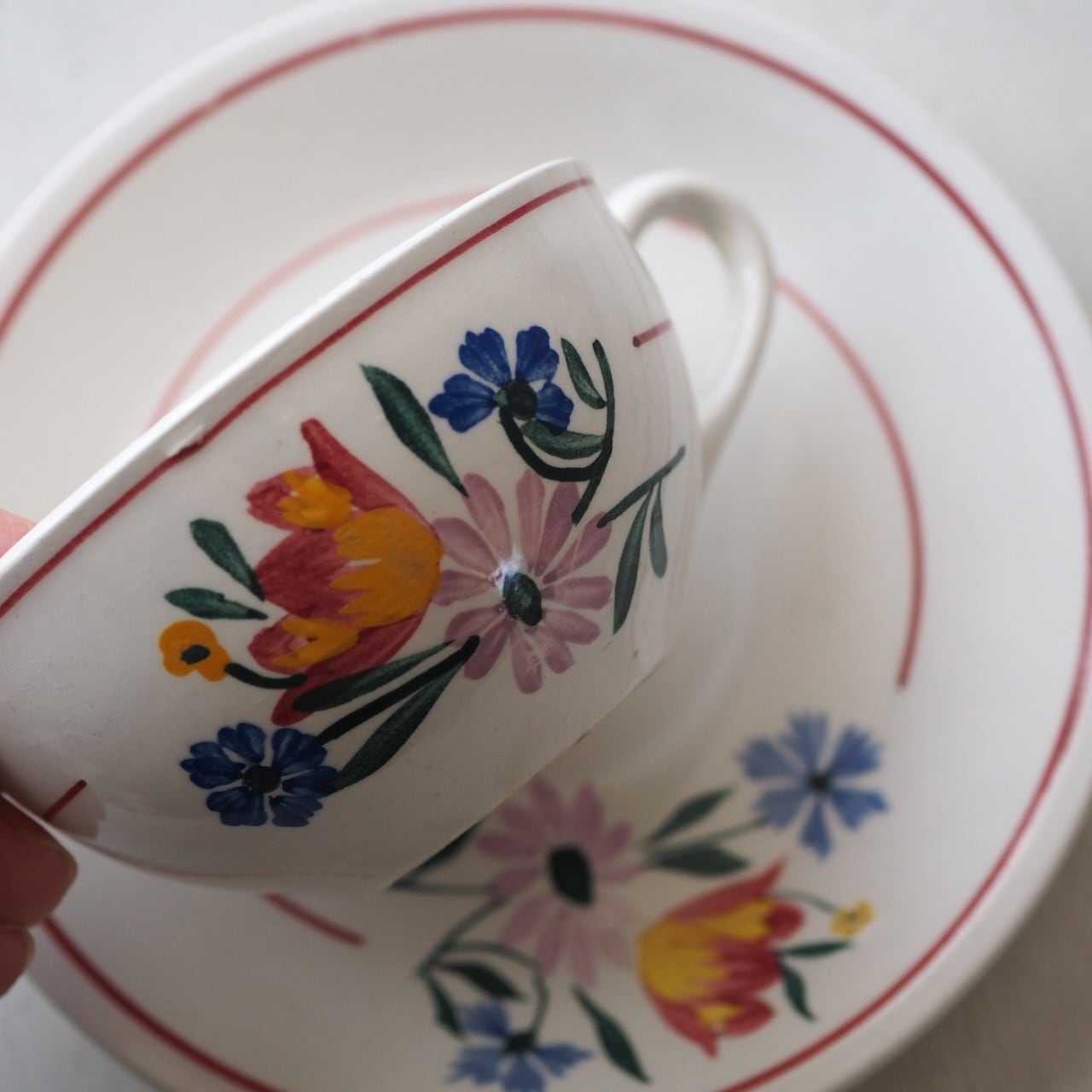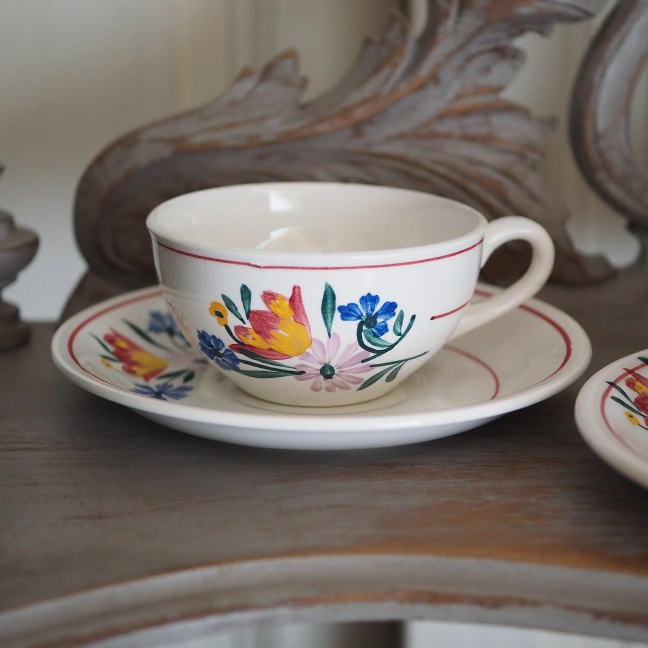 ハンドペイントが温かな、サンタマン・セラノのコーヒーカップ「Arlette」をペアでご用意しました。