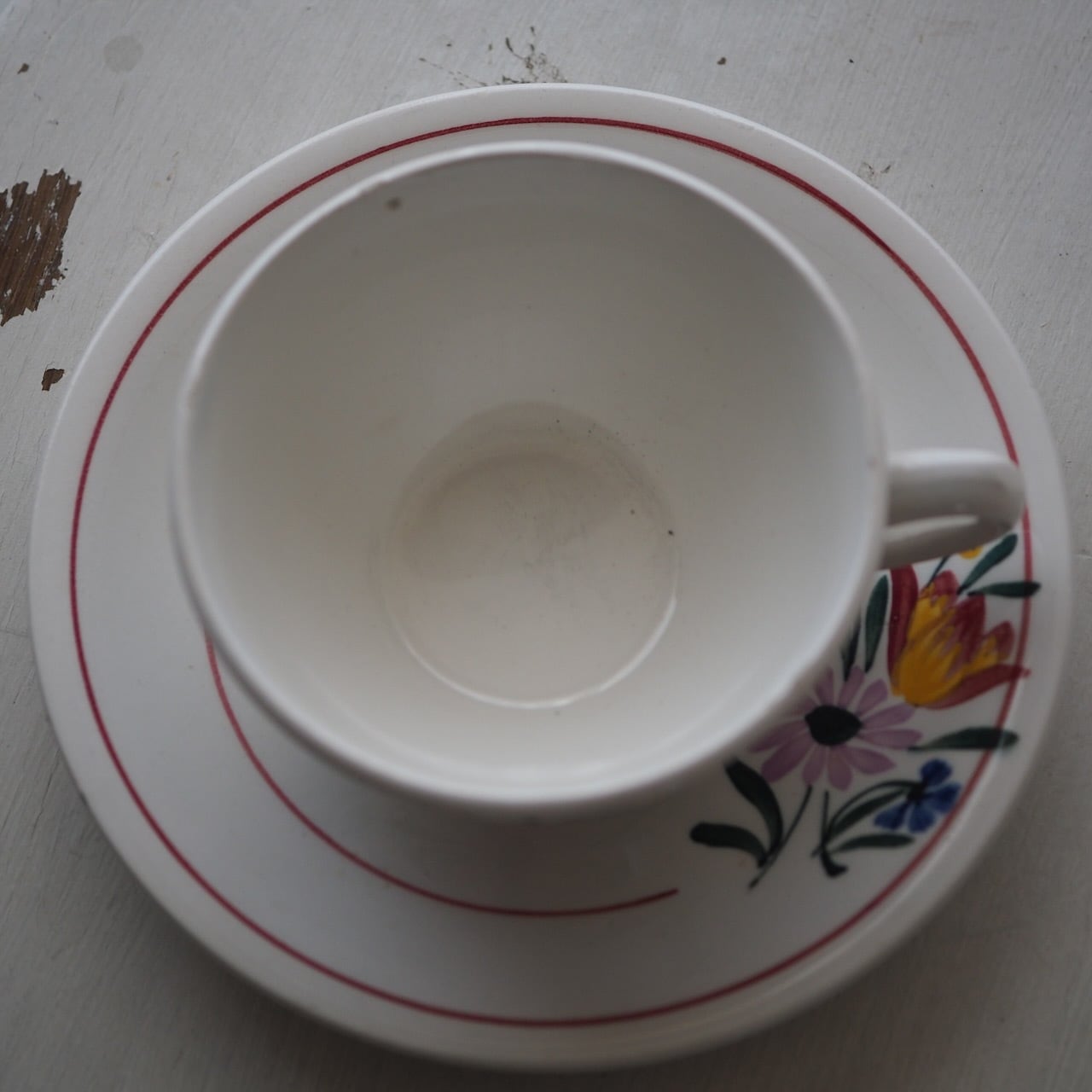 大きさは、フランスでの食後のコーヒーサイズ。食後に甘いものと一緒にいただくコーヒーカップとソーサーのセットです。