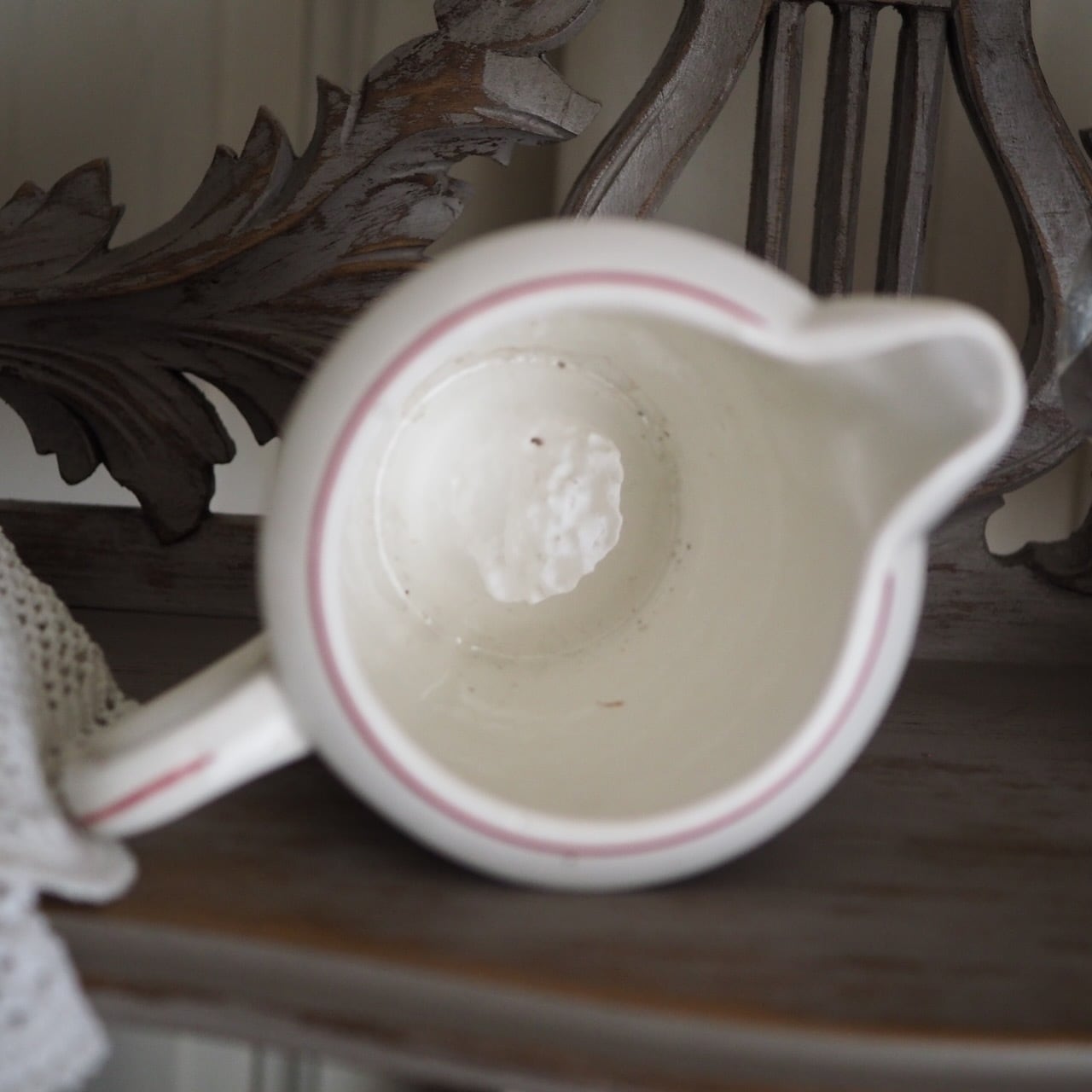 典型的なミルクポットの大きさです。ちょっとベランダの花を挿して、キッチンや窓辺に置くのにちょうどいいサイズ感です。