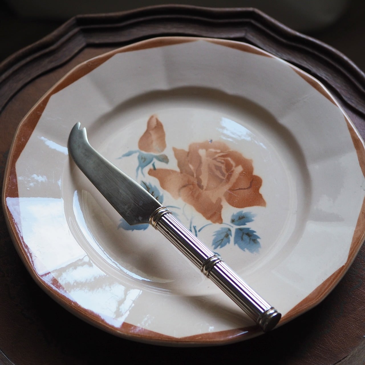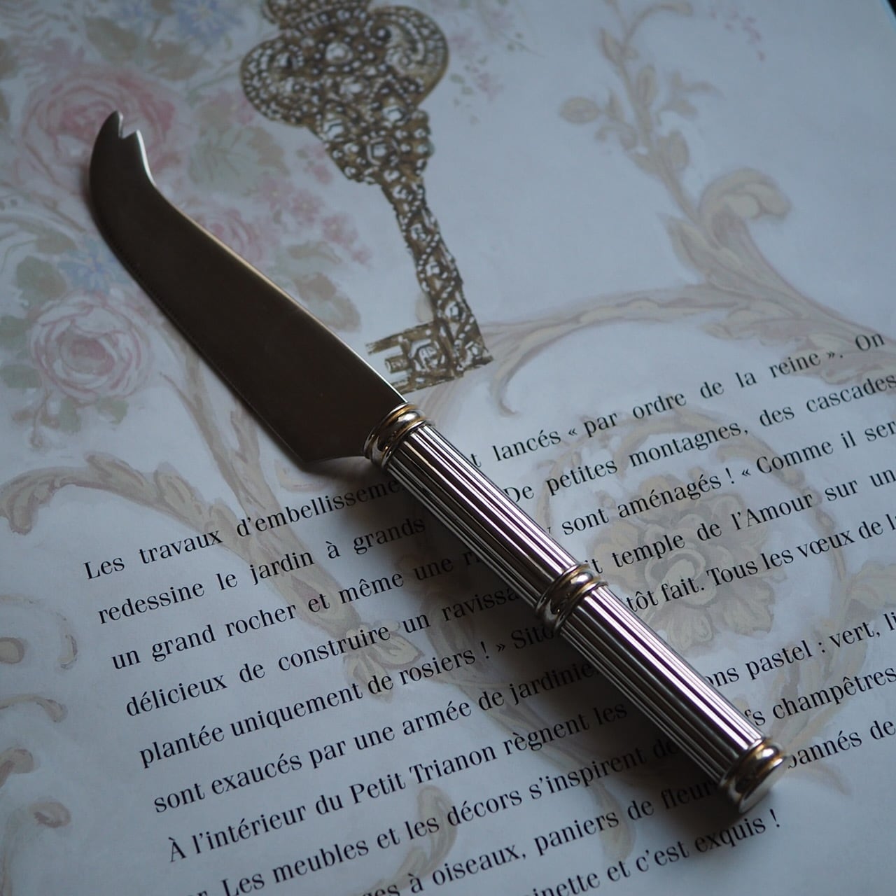フランスでは、食事の後(デザートの前)、お皿にチーズを盛り合わせて、このナイフを添え、各自が好きなチーズを切って自分の皿に取り分けます。