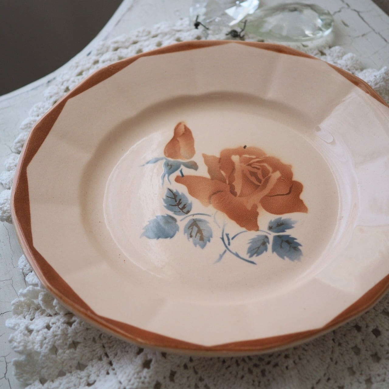プレートは、全面に大輪のバラがステンシルで描かれたディゴワンの定番です。直径22,5cmの使い勝手のいいサイズ。