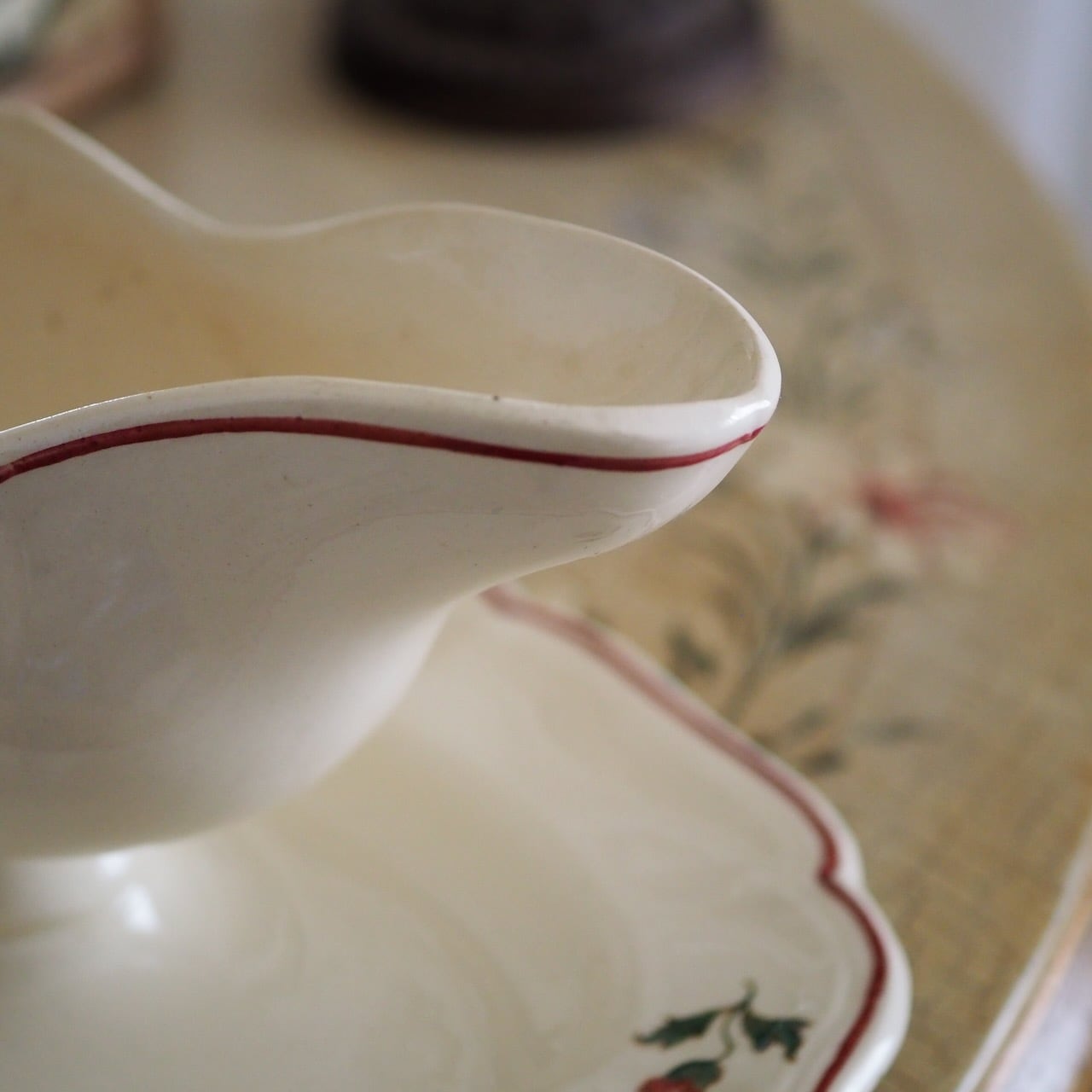 元はソースを入れてサーブするフランスの伝統的な器ですが、現在は花を飾ったり、いちごやさくらんぼなどのフルーツを入れたり、カードや写真をそっと入れてインテリアにする人が多いです。