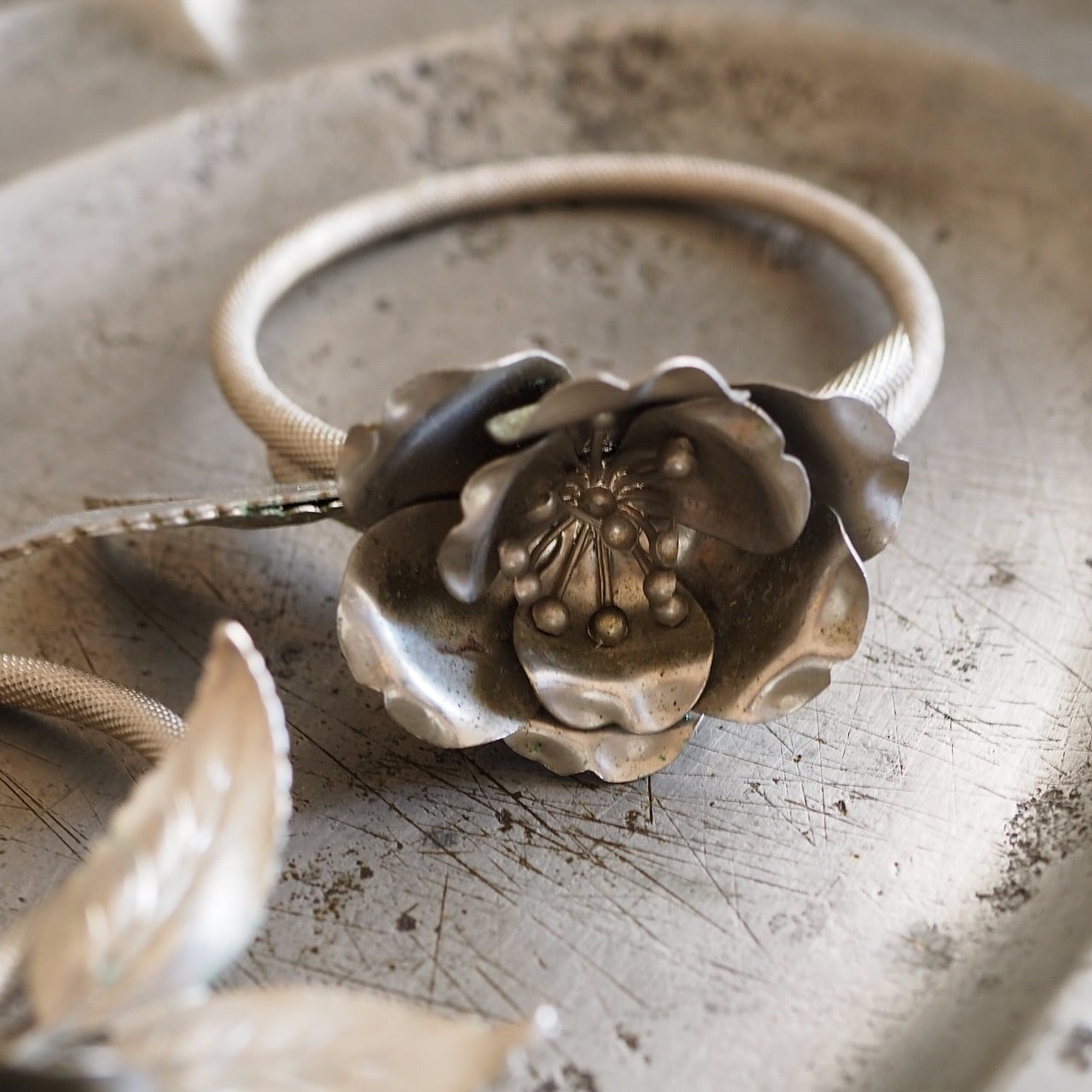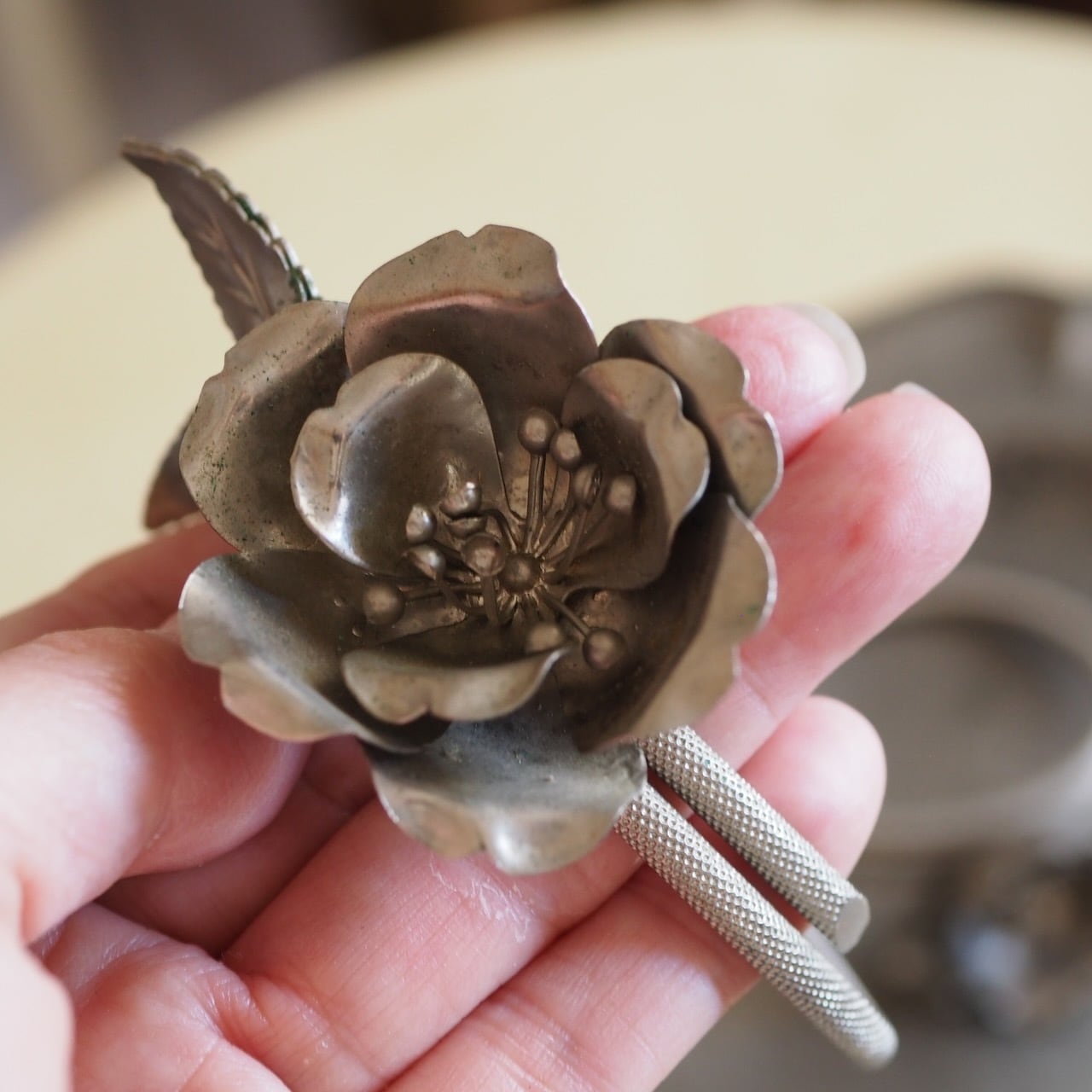 こちらはシルバーではなく、メタルです。特にダメージは見当たりませんが、ビンテージものなので細かい傷などはあります。ご了承ください。