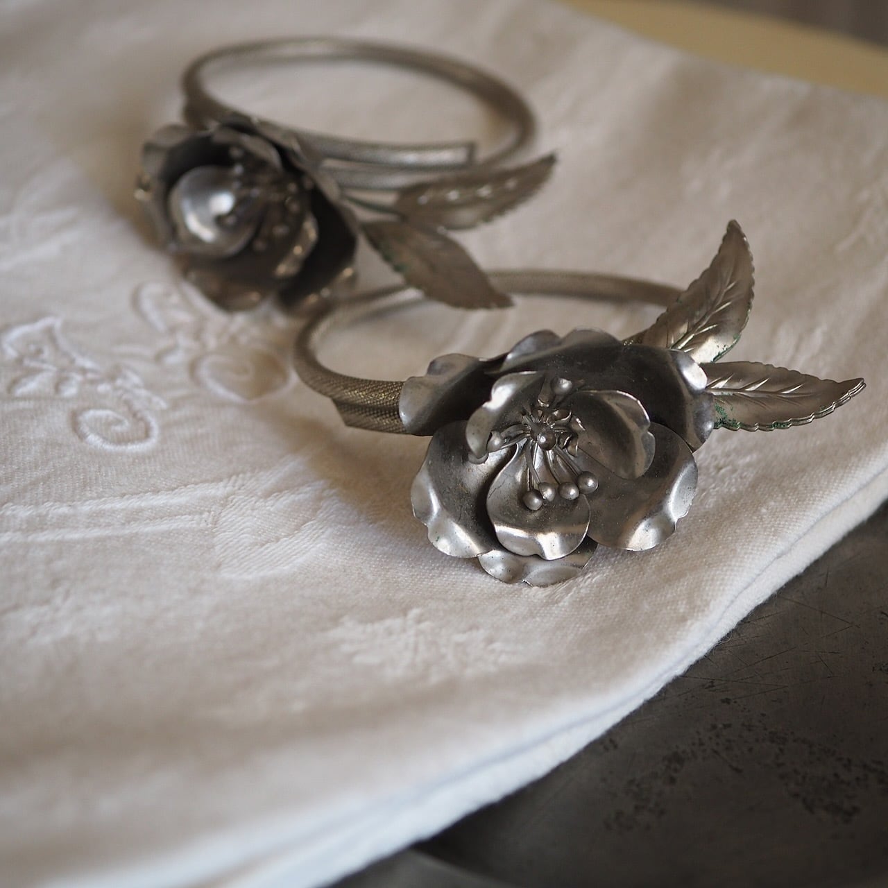 普段使いのかわいいナプキンリングはいかが? 使い捨ても便利でいいけれど、わが家では普段の食事もナプキン派。でも普段使いのものにはアイロンをかけず、リネンかコットンのビンテージものを洗いざらしで使っています。そして、お客様にはモノグラムの入ったアンティークや麻の美しい現代のもののセルヴィエット(ナプキン)をアイロンかけてお出しします。