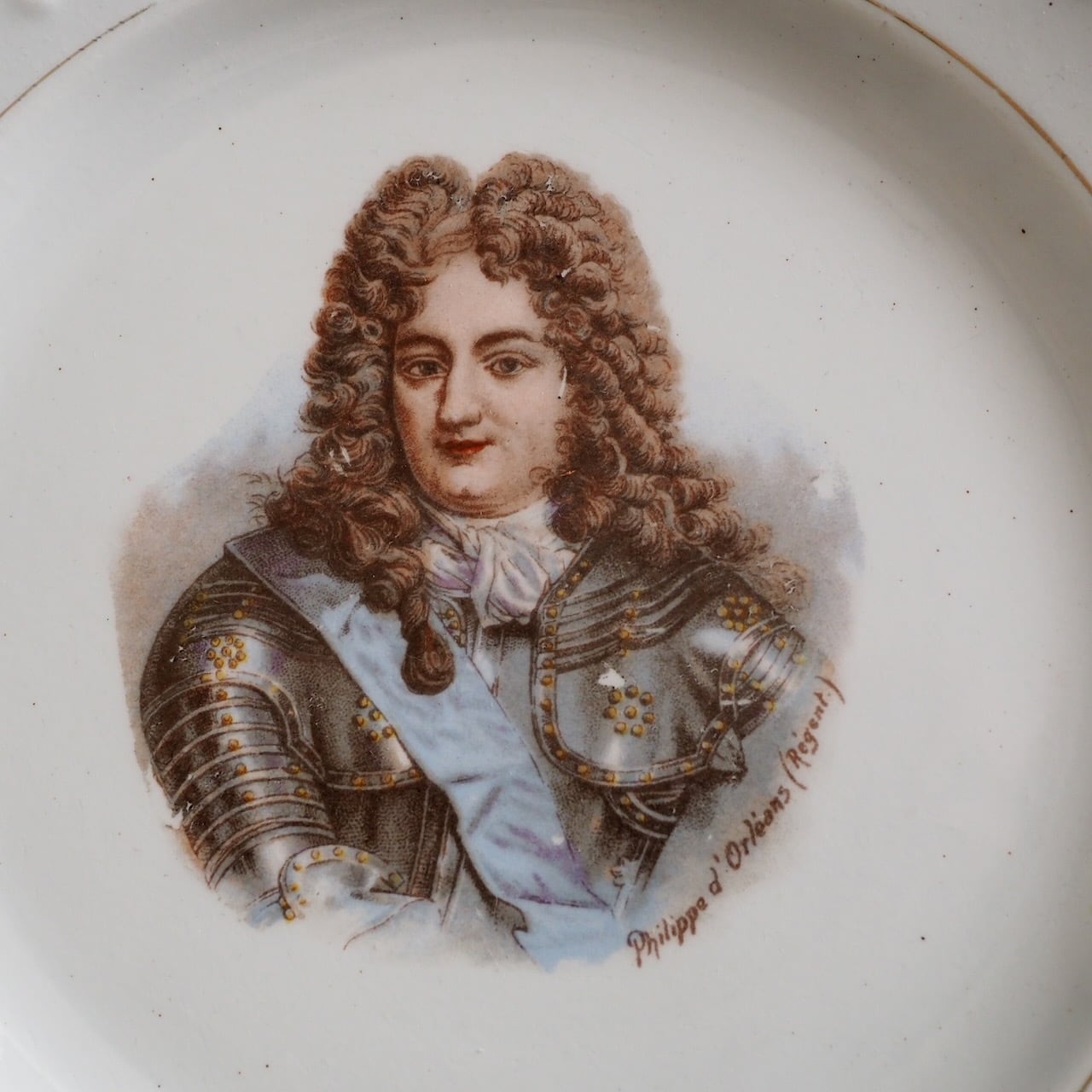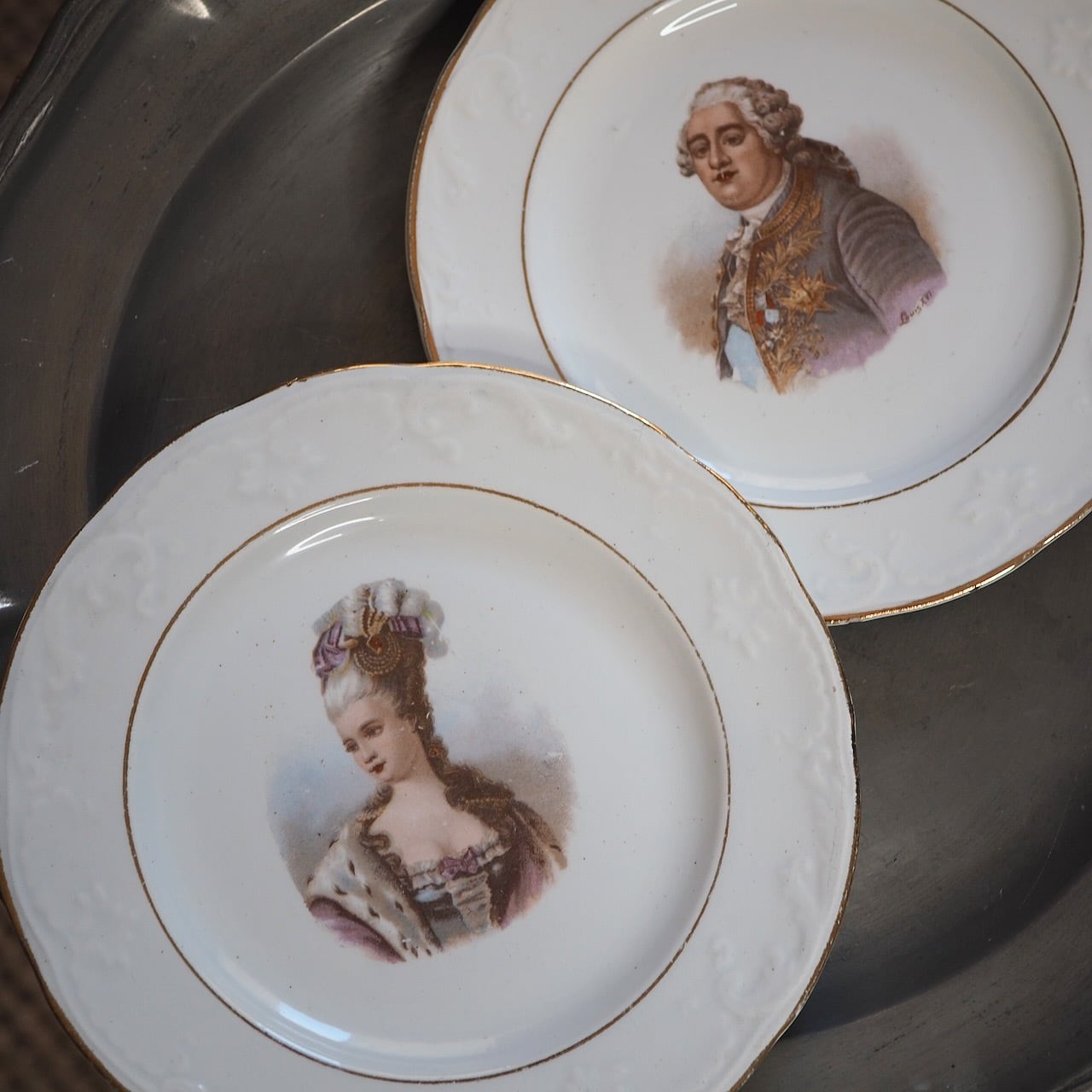 フランスの歴史ファンの方にお届けしたい「フランスの偉人」シリーズ、デザート皿5枚セットです。お土産もののお皿ではなく、歴史ある窯、サンタマン・アマージュで1920年頃に作られたプレート。