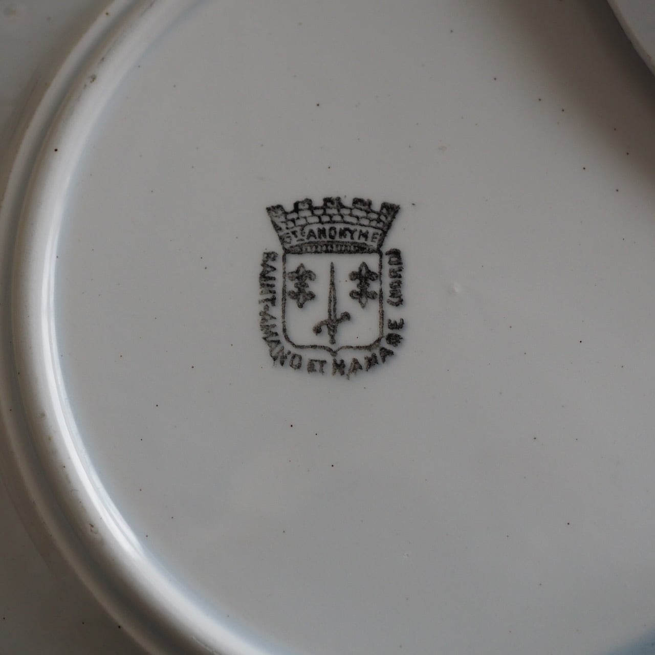 カオリンや長石が多く加えられた陶器(半陶半磁器)をTerre de fer テール・ド・フェールと呼びます。1770年に初めて生産され、19世紀後半に量産されました。より白く、より頑丈にと作られたものです。