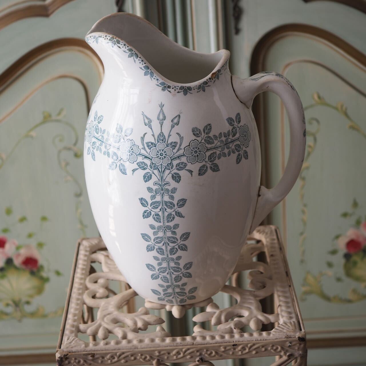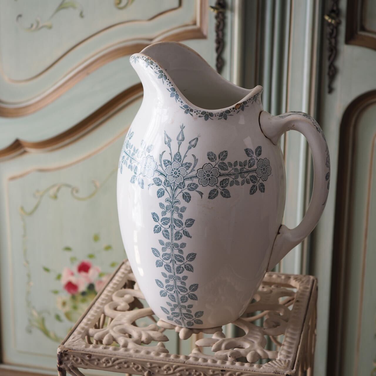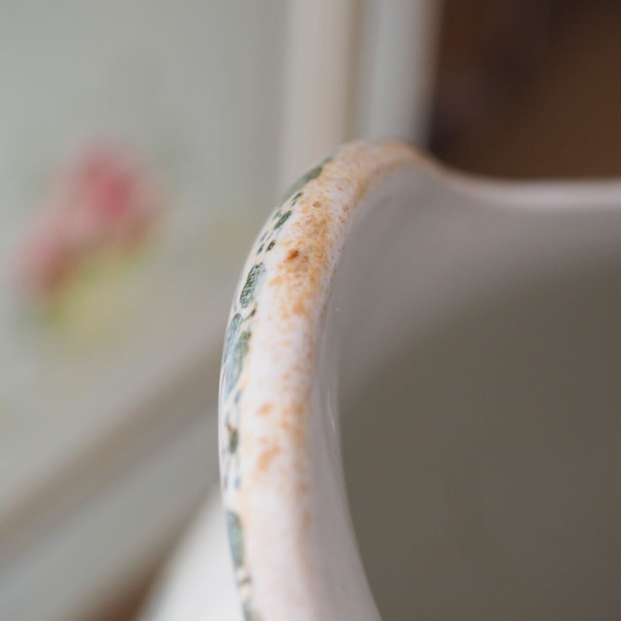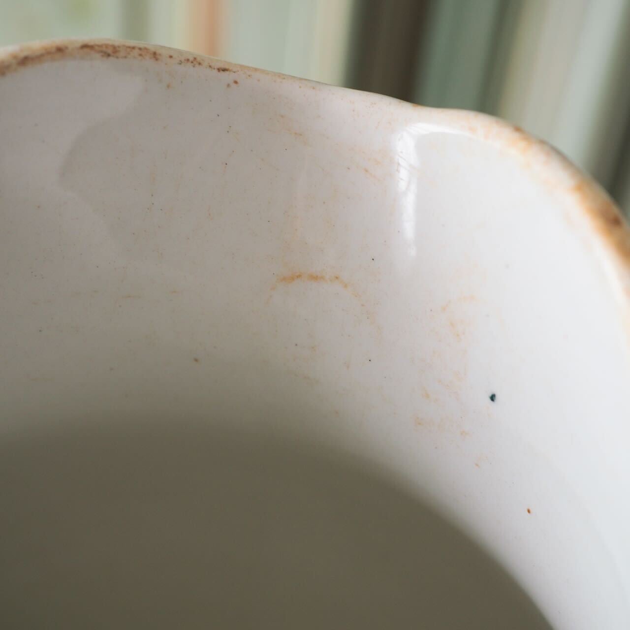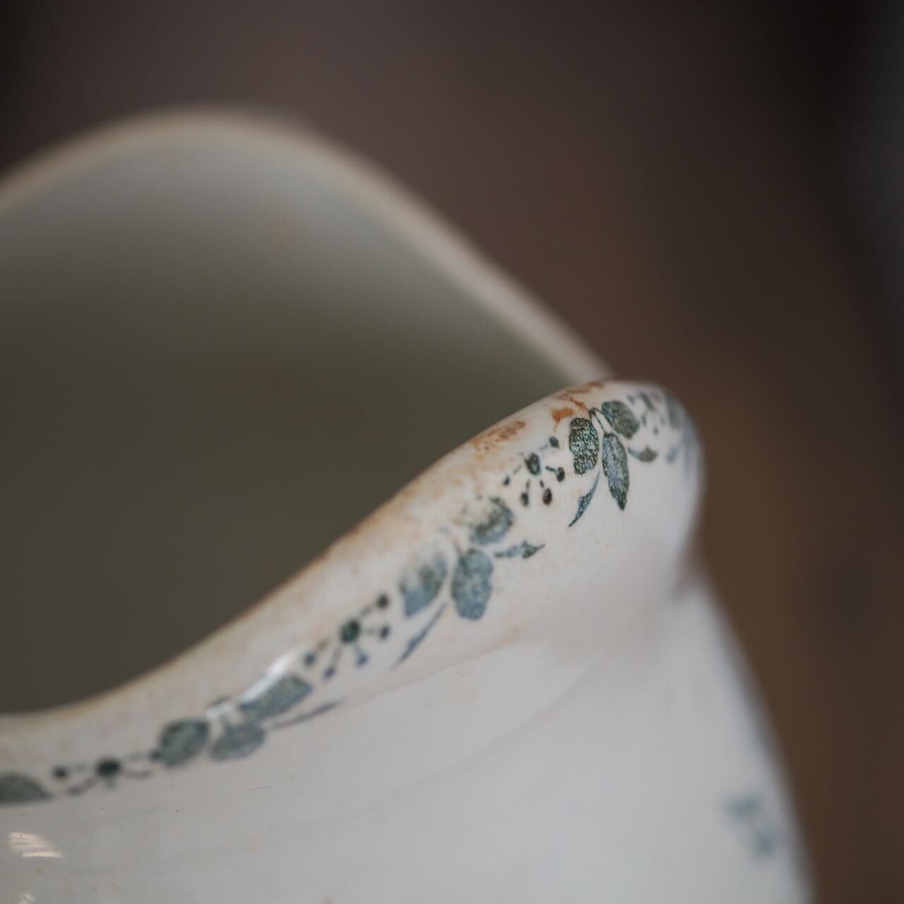 窯はリュネヴィルで、かなり大きなピシェ。小さな傷や小さな欠け、微かな色の変化や小さなシミなどがありますが、それすらも愛おしくなります。とても大切に使われてきたのが伝わってきます。